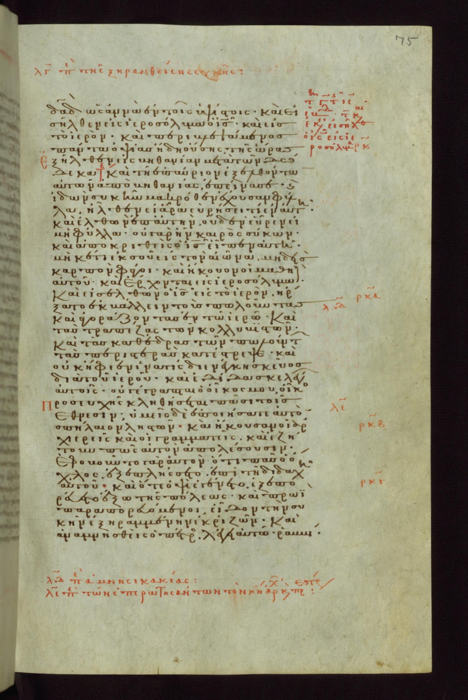 Thirteenth to fourteenth century minuscule of the Gospels, Acts, and Paul on parchment. 352 leaves; 1 column per page; 36 lines per column. Images are from the Walters Art Museum and are made available by Creative Commons Attribution Unported 3.0.