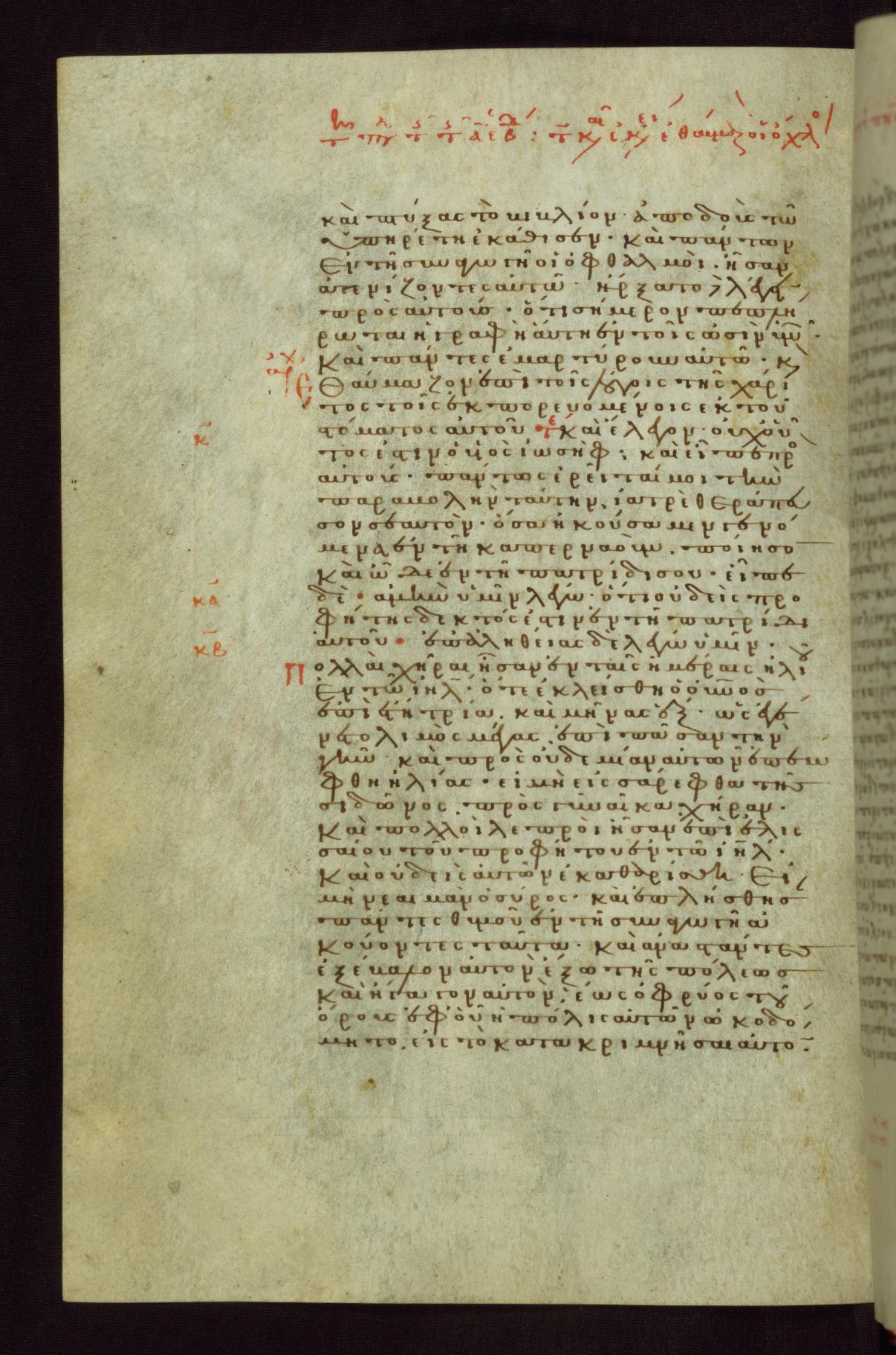 Thirteenth to fourteenth century minuscule of the Gospels, Acts, and Paul on parchment. 352 leaves; 1 column per page; 36 lines per column. Images are from the Walters Art Museum and are made available by Creative Commons Attribution Unported 3.0.