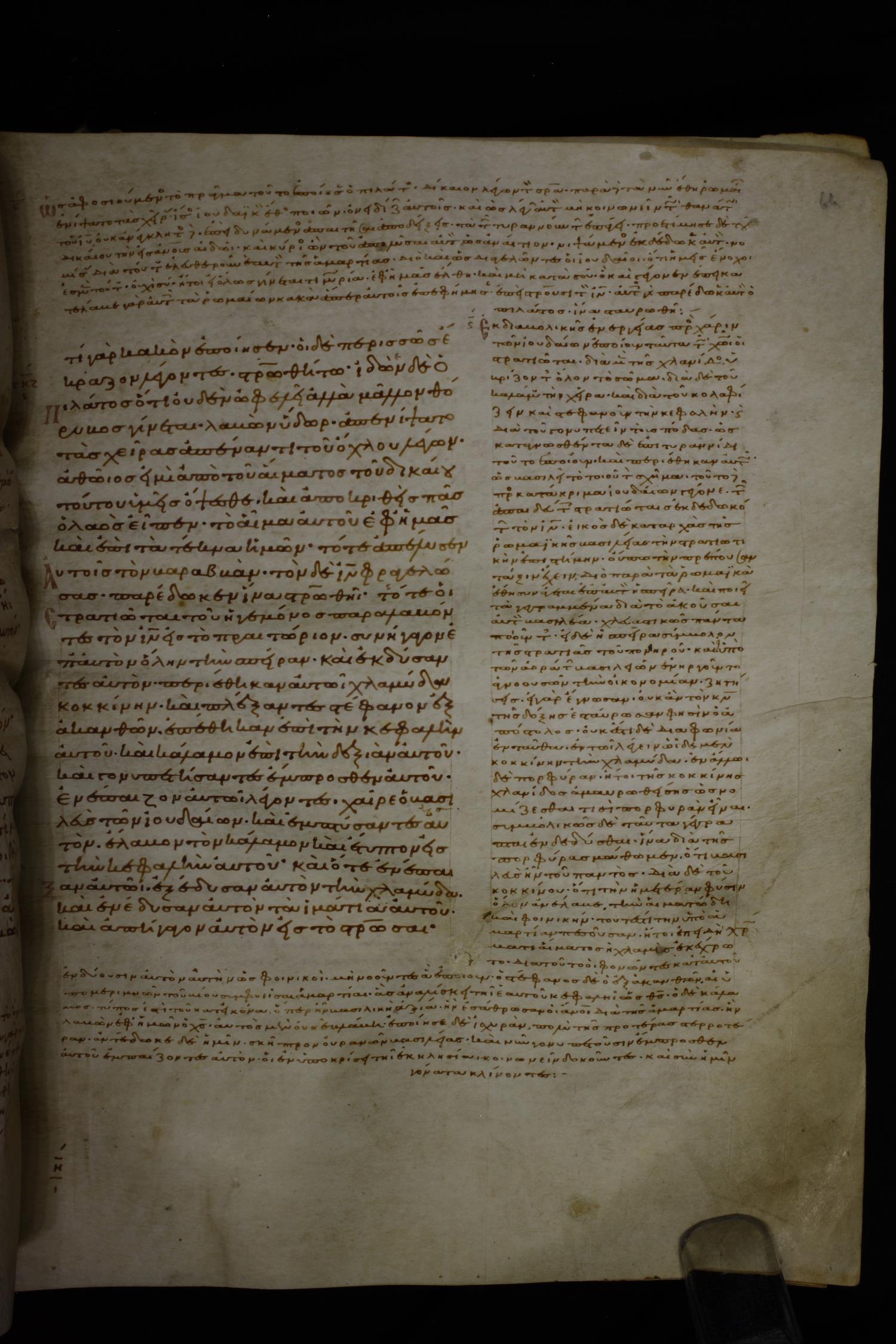 καὶ ἐμπτύσαντες εἰς αὐτὸν ἔλαβον τὸν κάλαμον καὶ ἔτυπτον εἰς τὴν κεφαλὴν αὐτοῦ.
