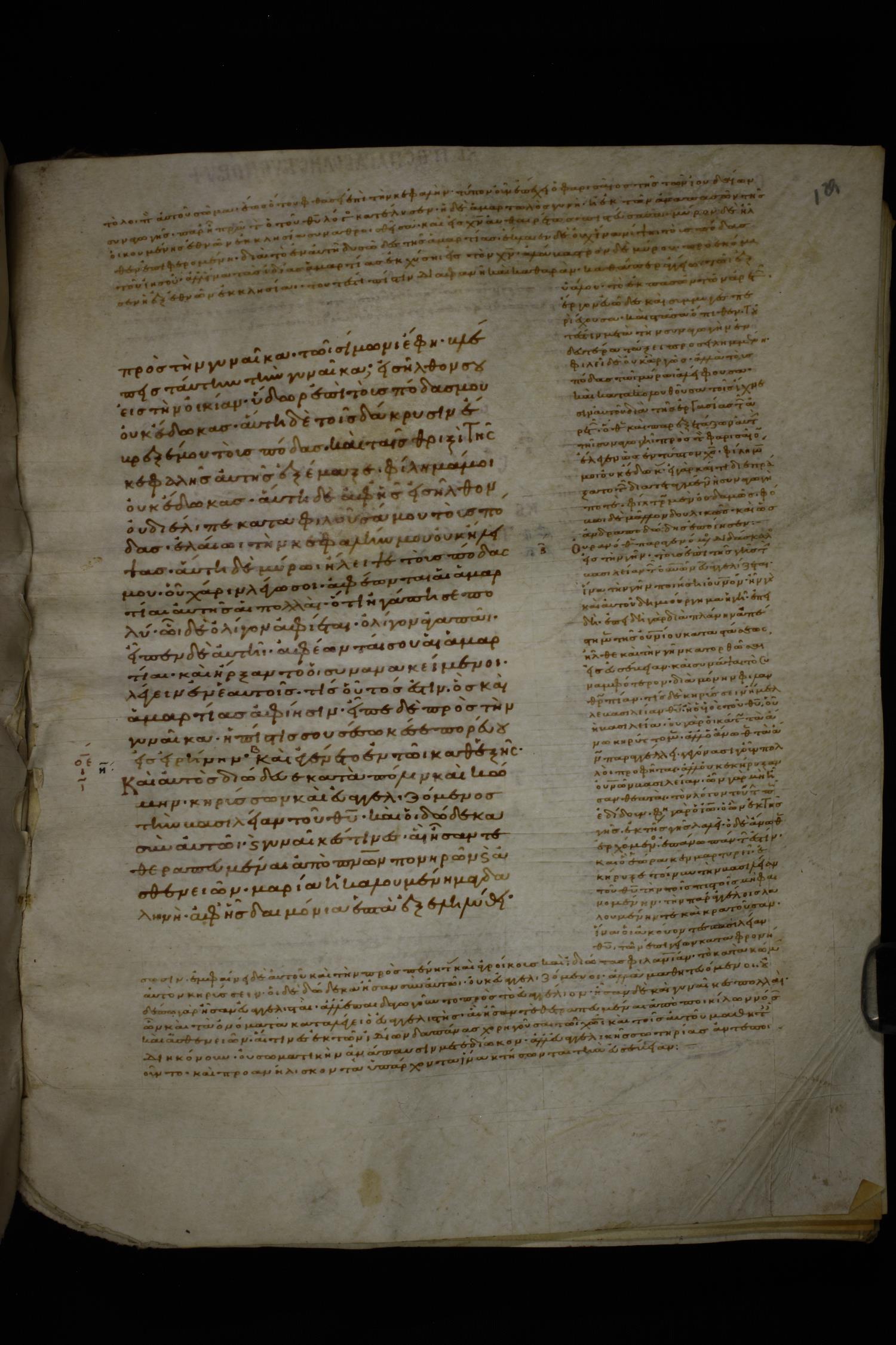 Tenth century manuscript of the Gospels with commentary on parchment; 215 leaves, single column, c. 17-26 lines per column.