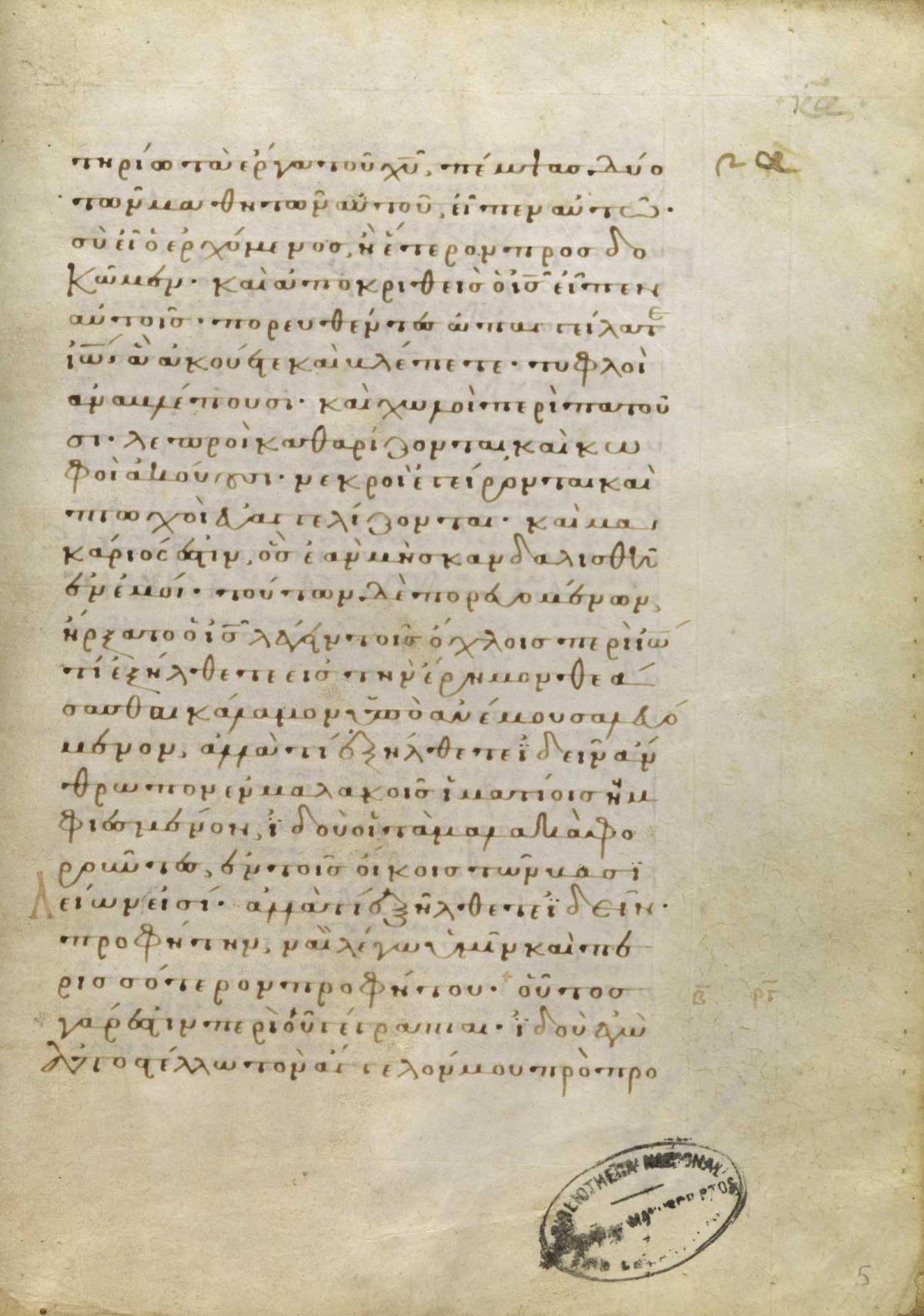 Ὁ δὲ Ἰωάνης / Ἰωάννης ἀκούσας ἐν τῷ δεσμωτηρίῳ τὰ ἔργα τοῦ χριστοῦ πέμψας διὰ τῶν μαθητῶν αὐτοῦ