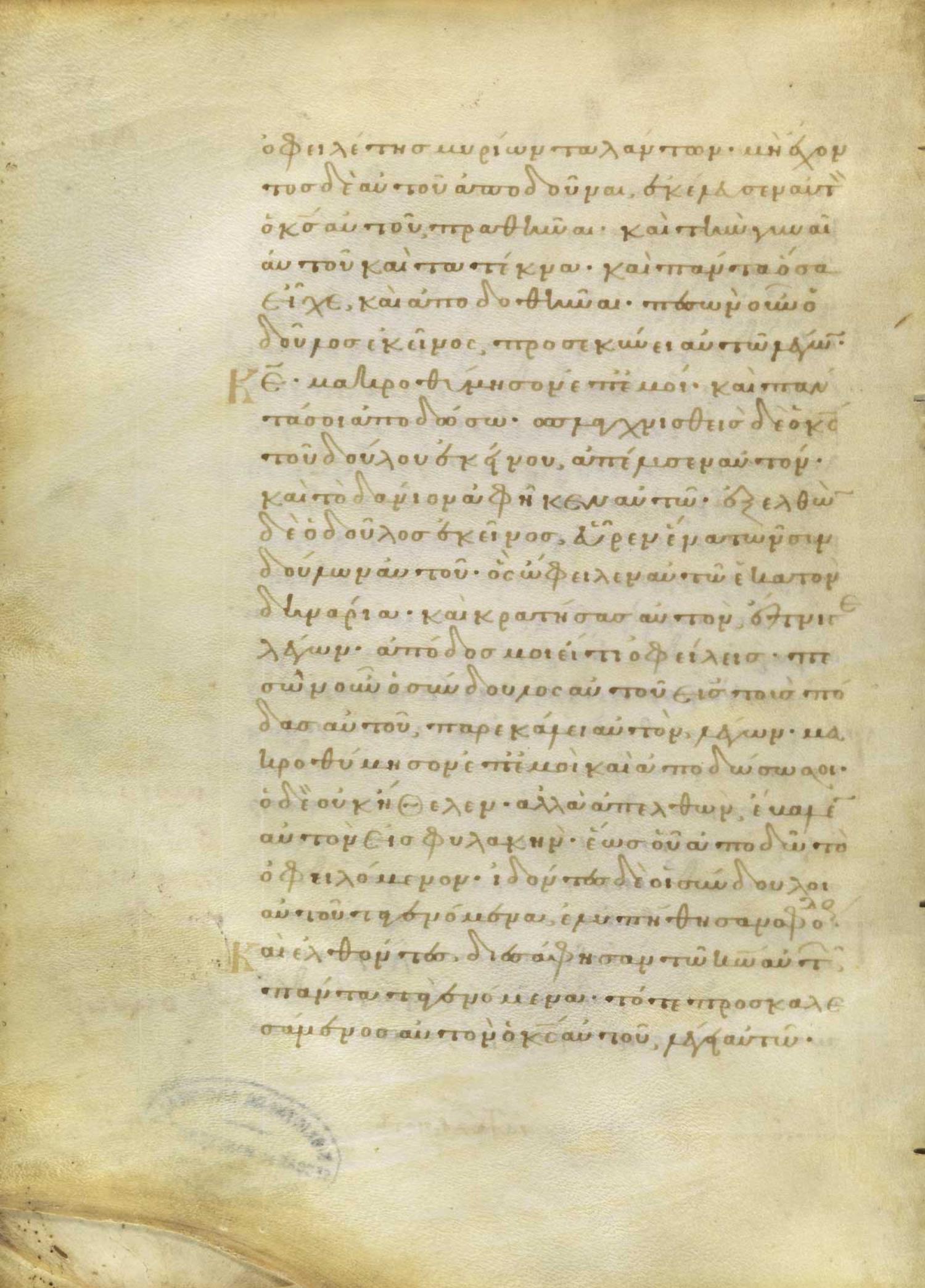 ὁ δὲ οὐκ ἤθελεν, ἀλλὰ ἀπελθὼν ἔβαλεν αὐτὸν εἰς φυλακὴν ἕως ἀποδῷ τὸ ὀφειλόμενον.