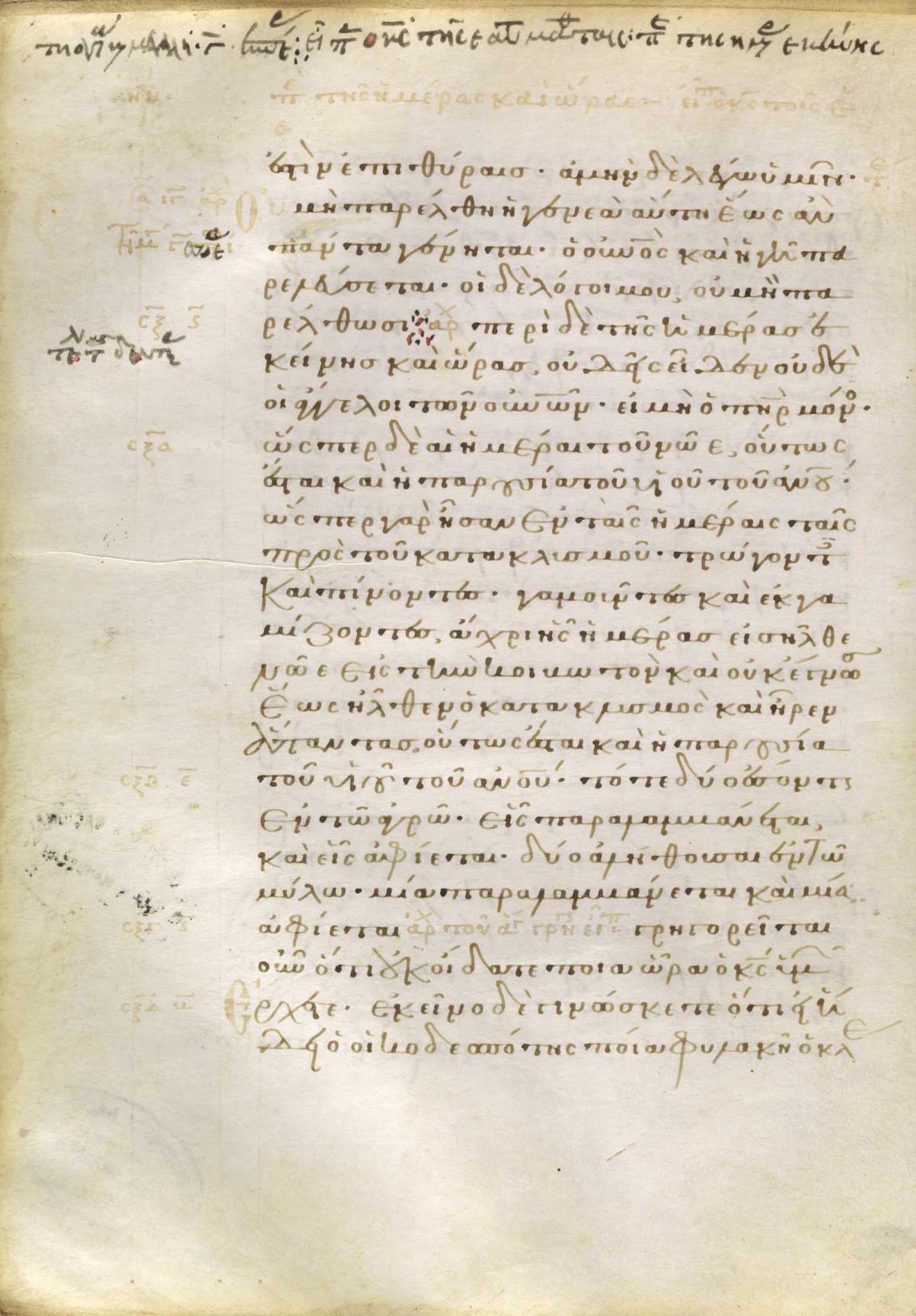 Eleventh or twelfth century minuscule of the Gospels on parchment; 220 leaves, single column, 24 lines per column.