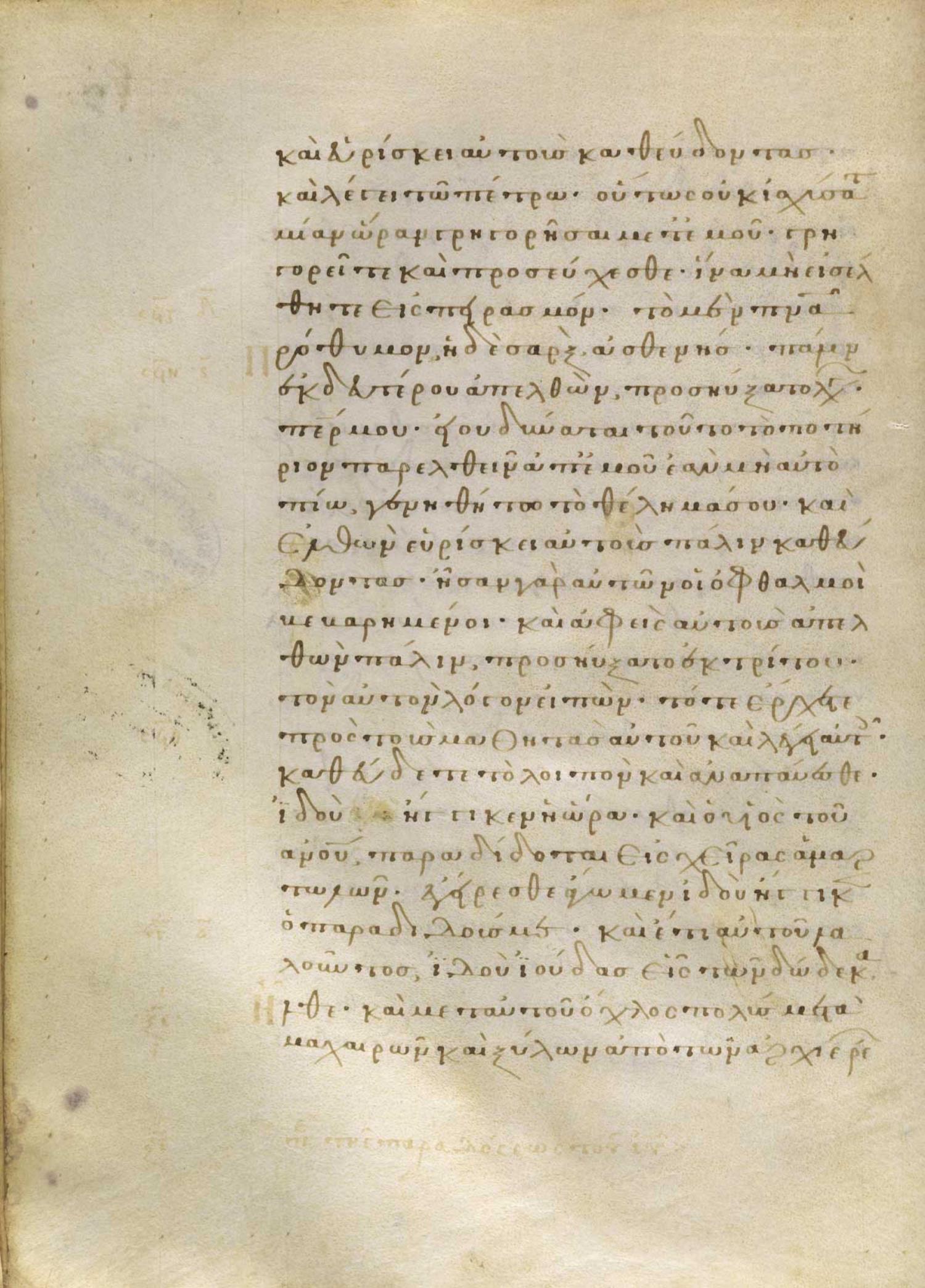 Eleventh or twelfth century minuscule of the Gospels on parchment; 220 leaves, single column, 24 lines per column.