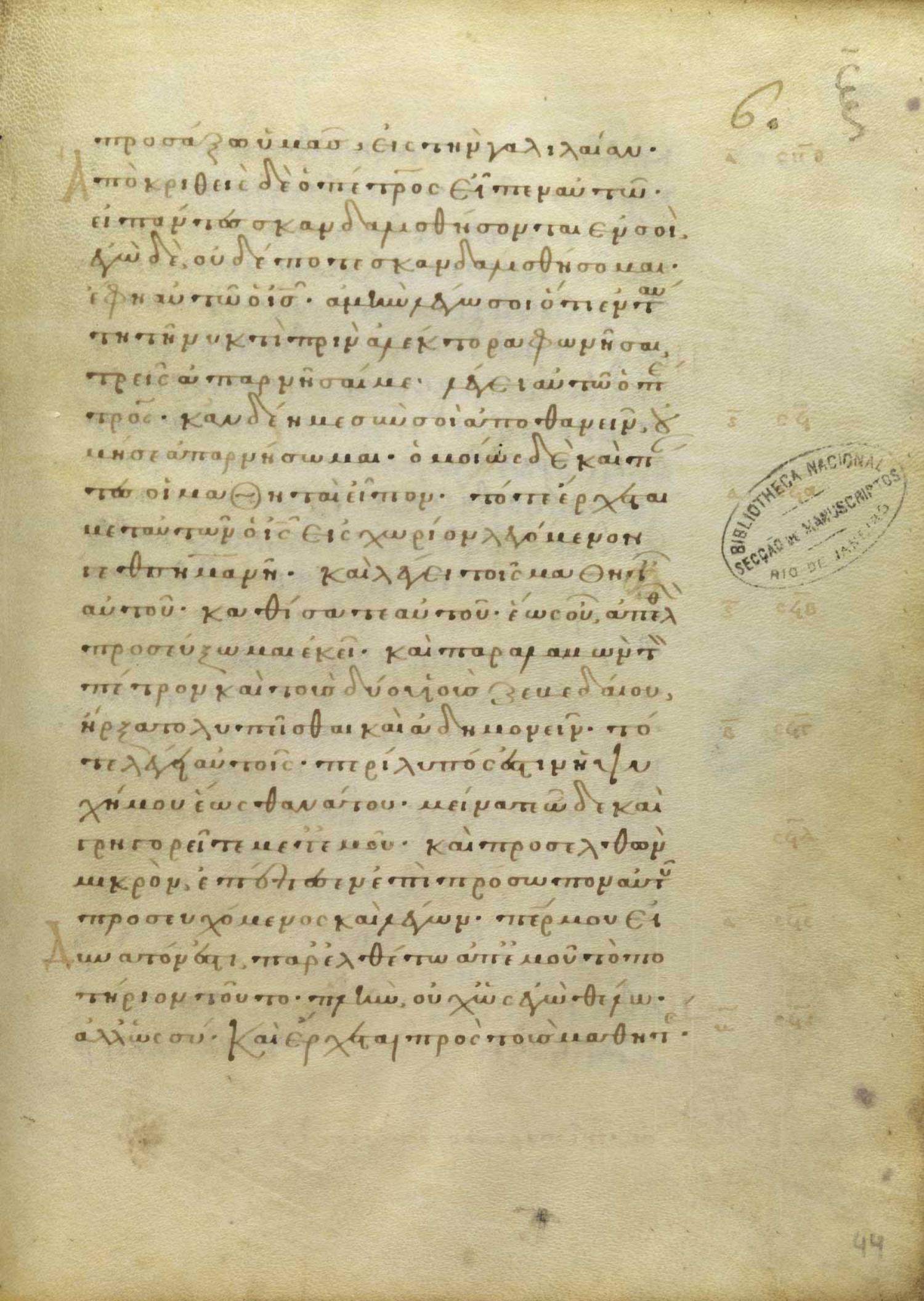 Τότε ἔρχεται μετ´ αὐτῶν ὁ Ἰησοῦς εἰς χωρίον λεγόμενον Γεθσημανεί / Γεθσημανί, καὶ λέγει τοῖς μαθηταῖς Καθίσατε αὐτοῦ ἕως οὗ ἀπελθὼν ἐκεῖ προσεύξωμαι.