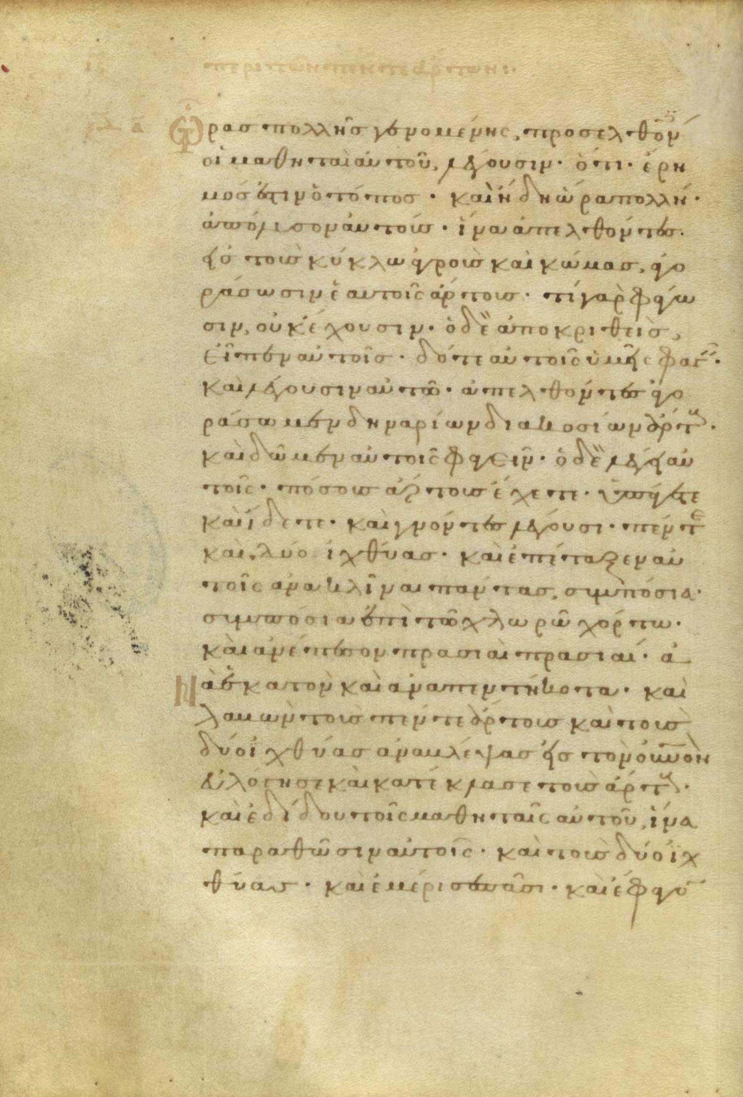 Καὶ ἤδη ὥρας πολλῆς γενομένης προσελθόντες αὐτῷ οἱ μαθηταὶ αὐτοῦ ἔλεγον ὅτι Ἔρημός ἐστιν ὁ τόπος, καὶ ἤδη ὥρα πολλή·