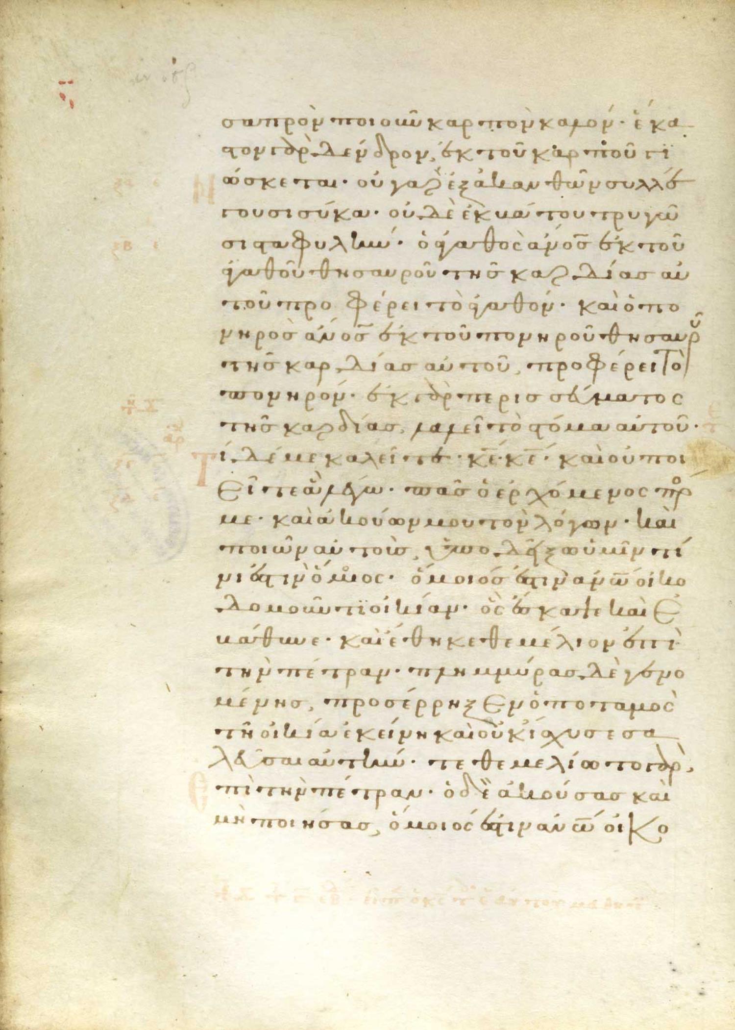 Eleventh or twelfth century minuscule of the Gospels on parchment; 220 leaves, single column, 24 lines per column.