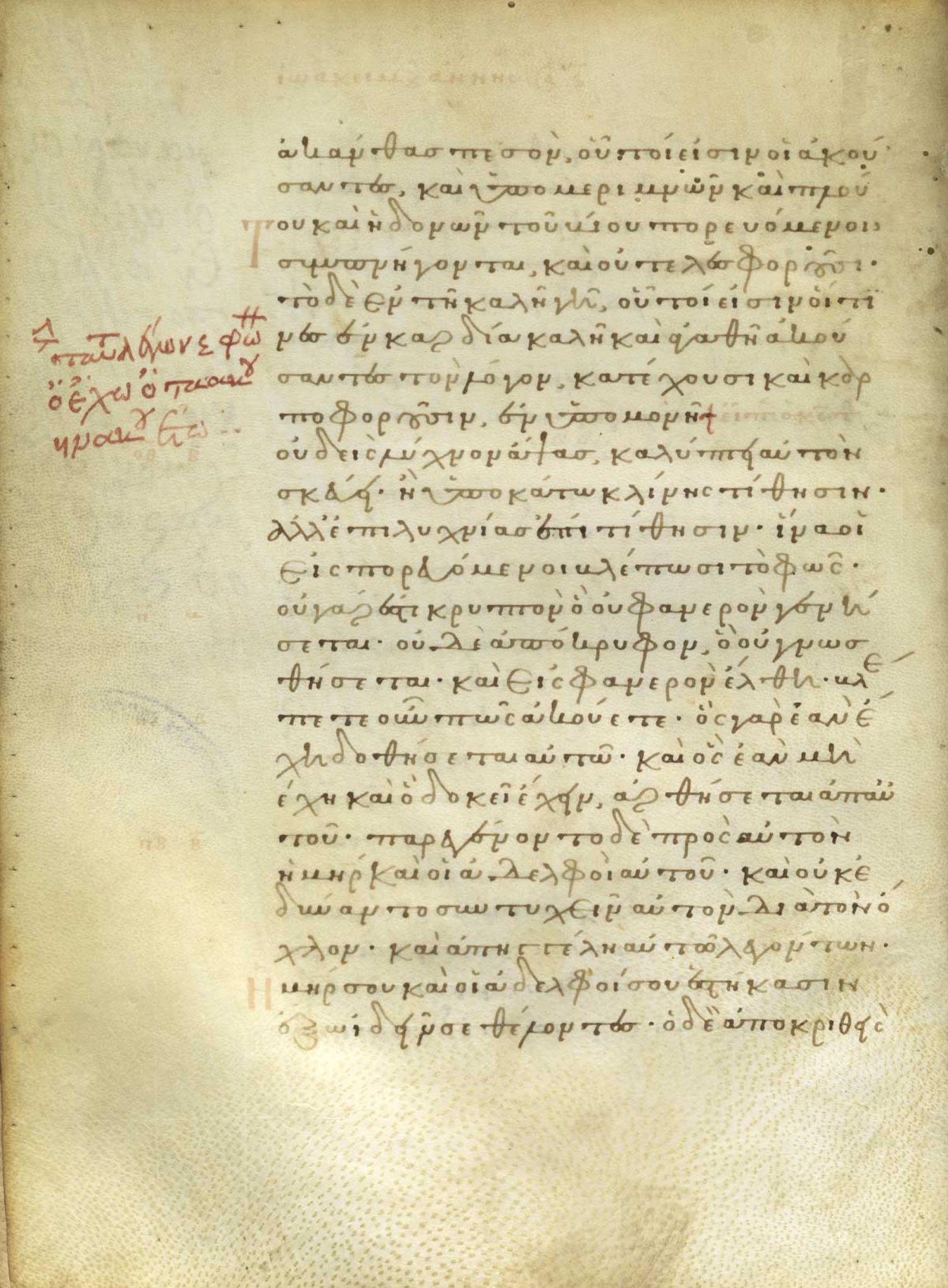 Βλέπετε οὖν πῶς ἀκούετε· ὃς ἂν γὰρ ἔχῃ, δοθήσεται αὐτῷ, καὶ ὃς ἂν μὴ ἔχῃ, καὶ ὃ δοκεῖ ἔχειν ἀρθήσεται ἀπ´ αὐτοῦ.
