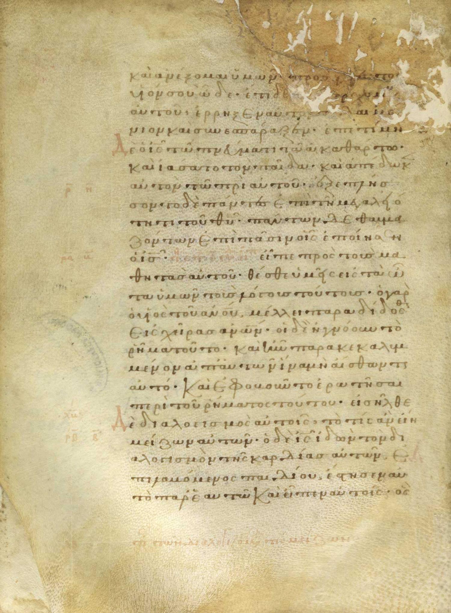 Eleventh or twelfth century minuscule of the Gospels on parchment; 220 leaves, single column, 24 lines per column.