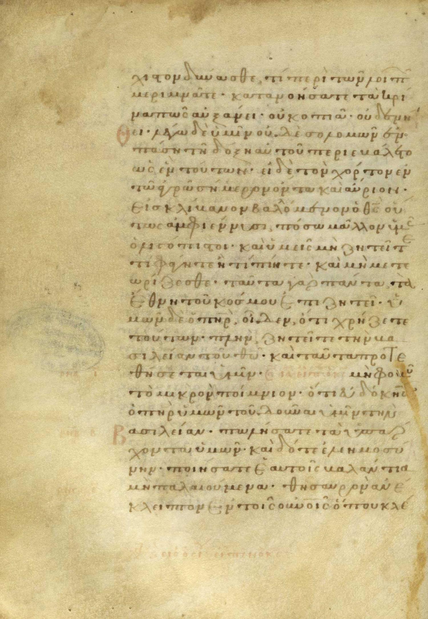 Eleventh or twelfth century minuscule of the Gospels on parchment; 220 leaves, single column, 24 lines per column.