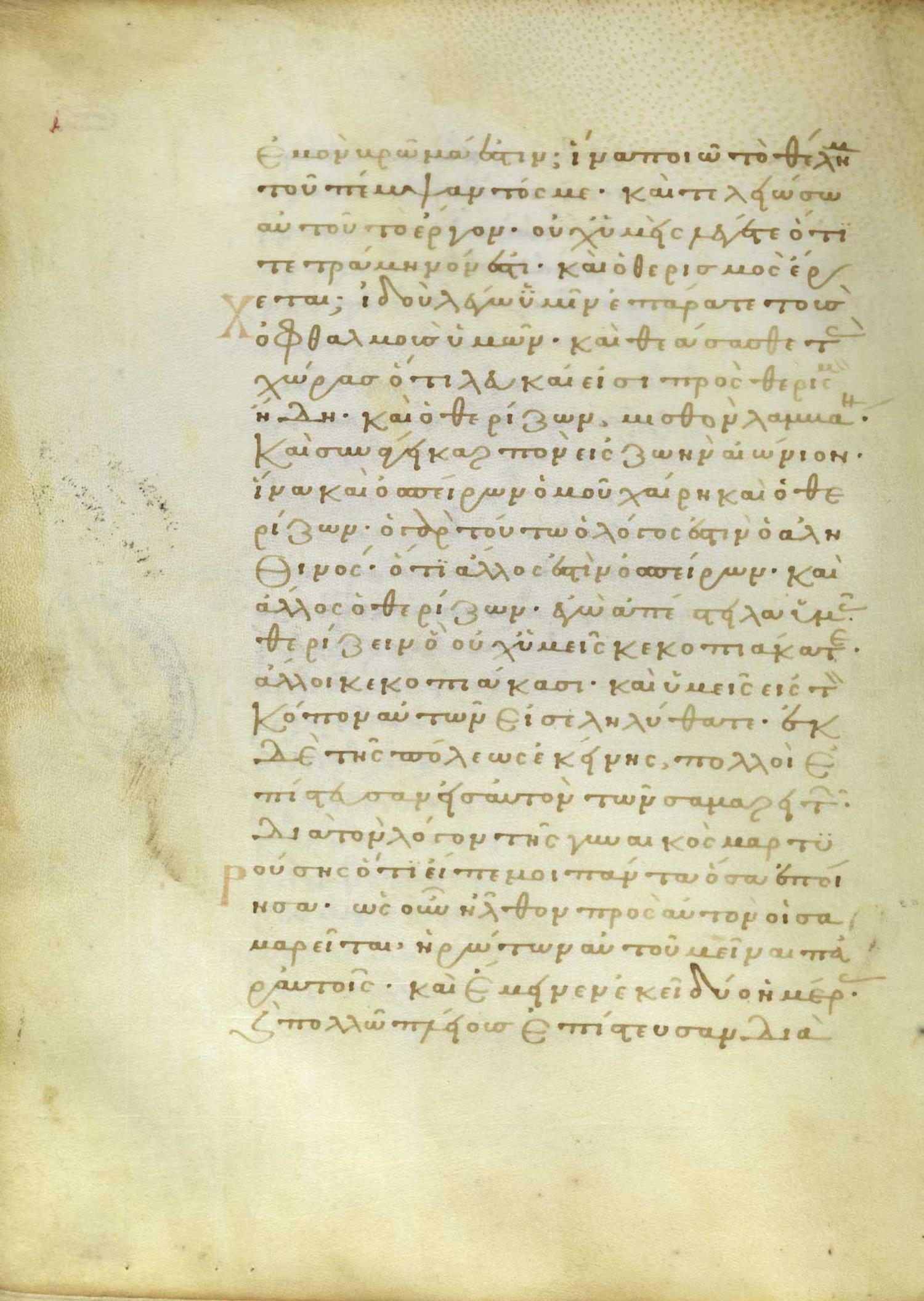 Eleventh or twelfth century minuscule of the Gospels on parchment; 220 leaves, single column, 24 lines per column.