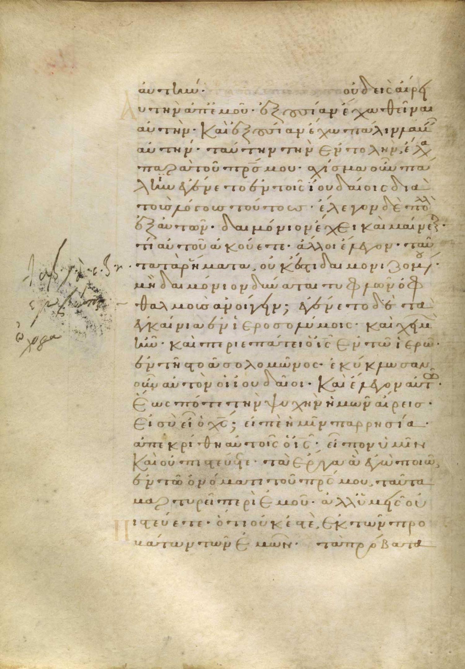 Eleventh or twelfth century minuscule of the Gospels on parchment; 220 leaves, single column, 24 lines per column.