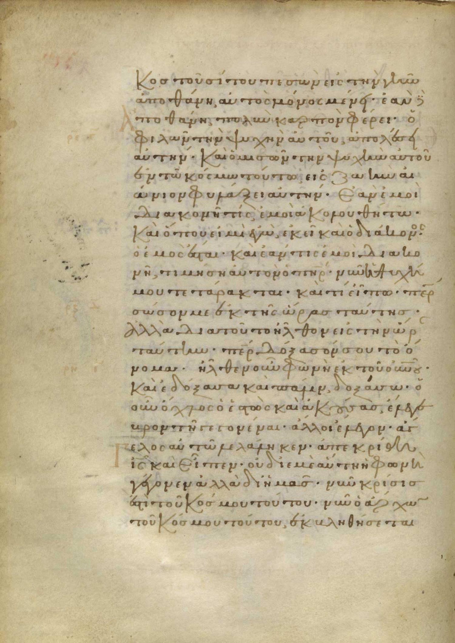 Eleventh or twelfth century minuscule of the Gospels on parchment; 220 leaves, single column, 24 lines per column.