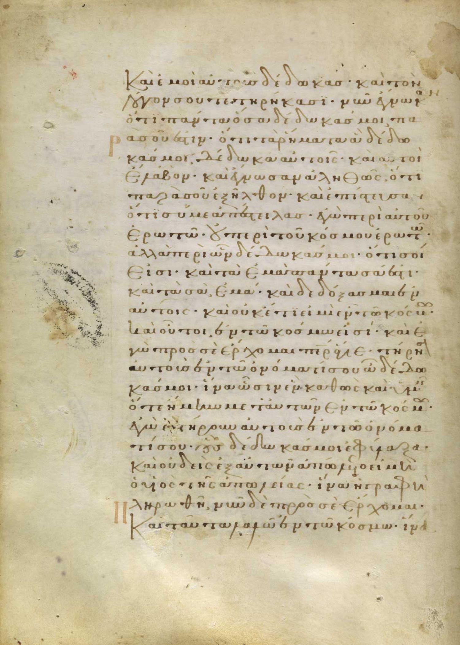 Ὅτε ἤμην μετ´ αὐτῶν ἐγὼ ἐτήρουν αὐτοὺς ἐν τῷ ὀνόματί σου ᾧ δέδωκάς μοι, καὶ ἐφύλαξα, καὶ οὐδεὶς ἐξ αὐτῶν ἀπώλετο εἰ μὴ ὁ υἱὸς τῆς ἀπωλείας, ἵνα ἡ γραφὴ πληρωθῇ.