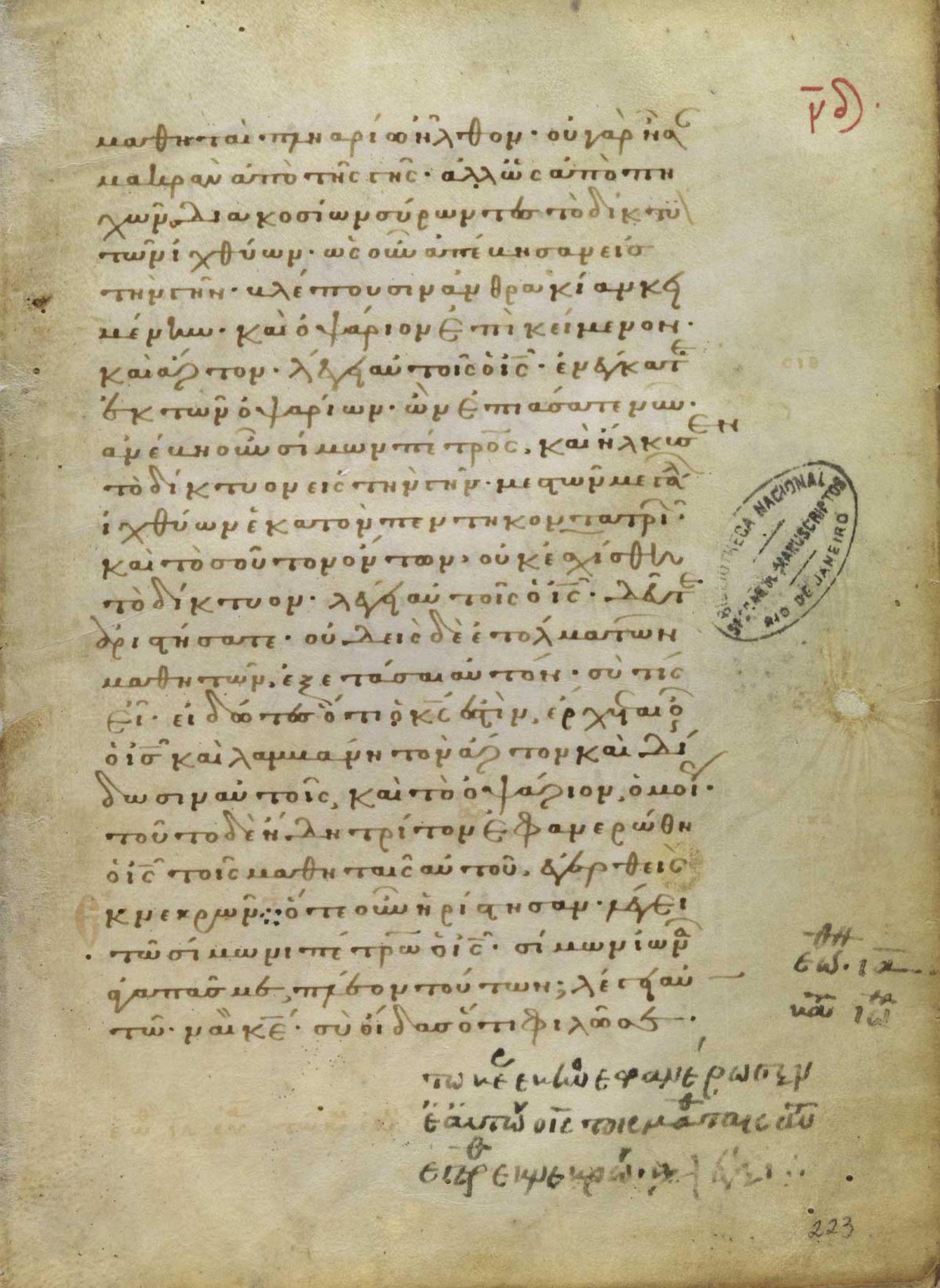 λέγει αὐτοῖς ὁ Ἰησοῦς Δεῦτε ἀριστήσατε. οὐδεὶς {δὲ} ἐτόλμα τῶν μαθητῶν ἐξετάσαι αὐτόν Σὺ τίς εἶ; εἰδότες ὅτι ὁ κύριός ἐστιν.