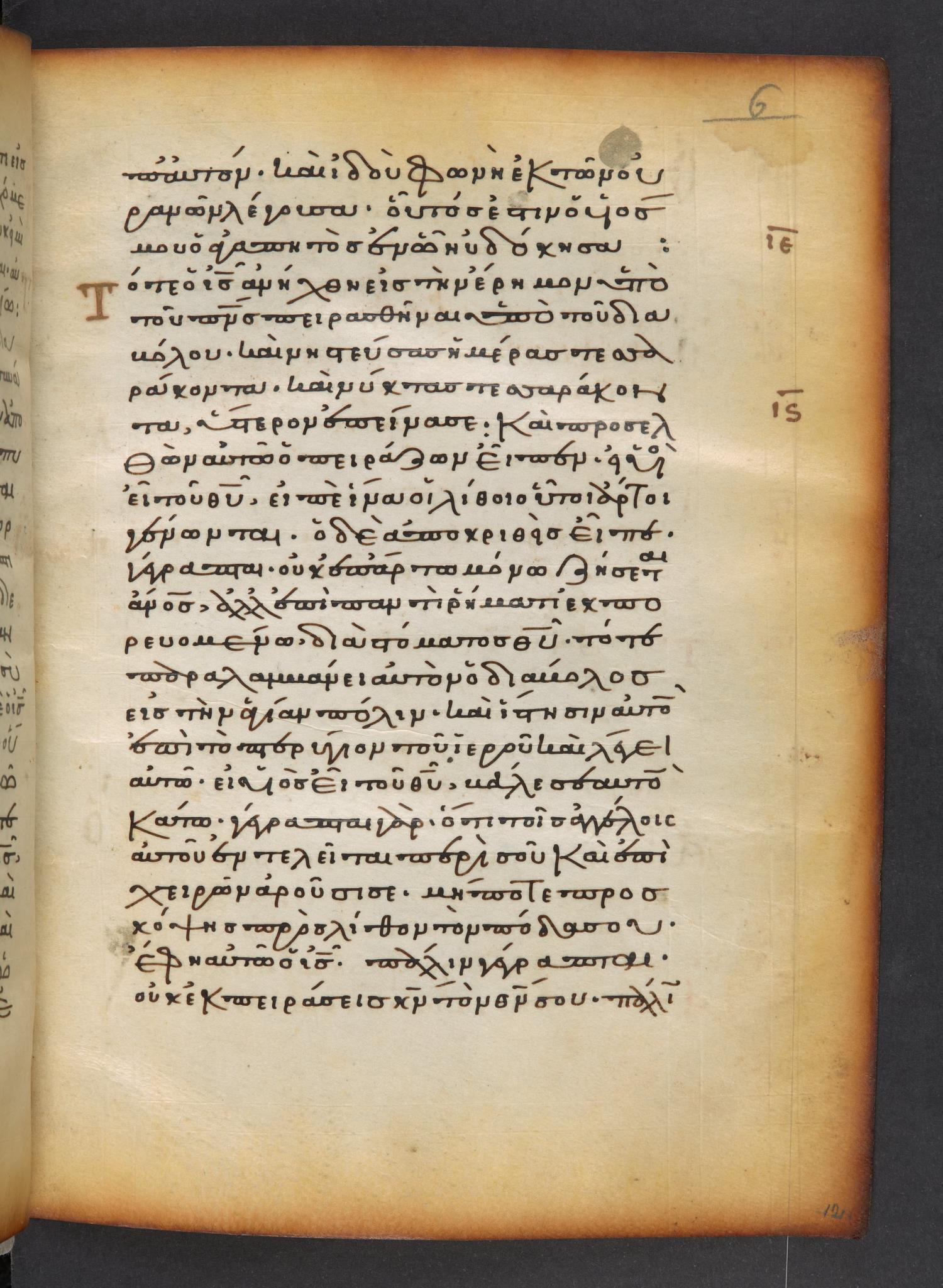 Τότε παραλαμβάνει αὐτὸν ὁ διάβολος εἰς τὴν ἁγίαν πόλιν, καὶ ἔστησεν αὐτὸν ἐπὶ τὸ πτερύγιον τοῦ ἱεροῦ,