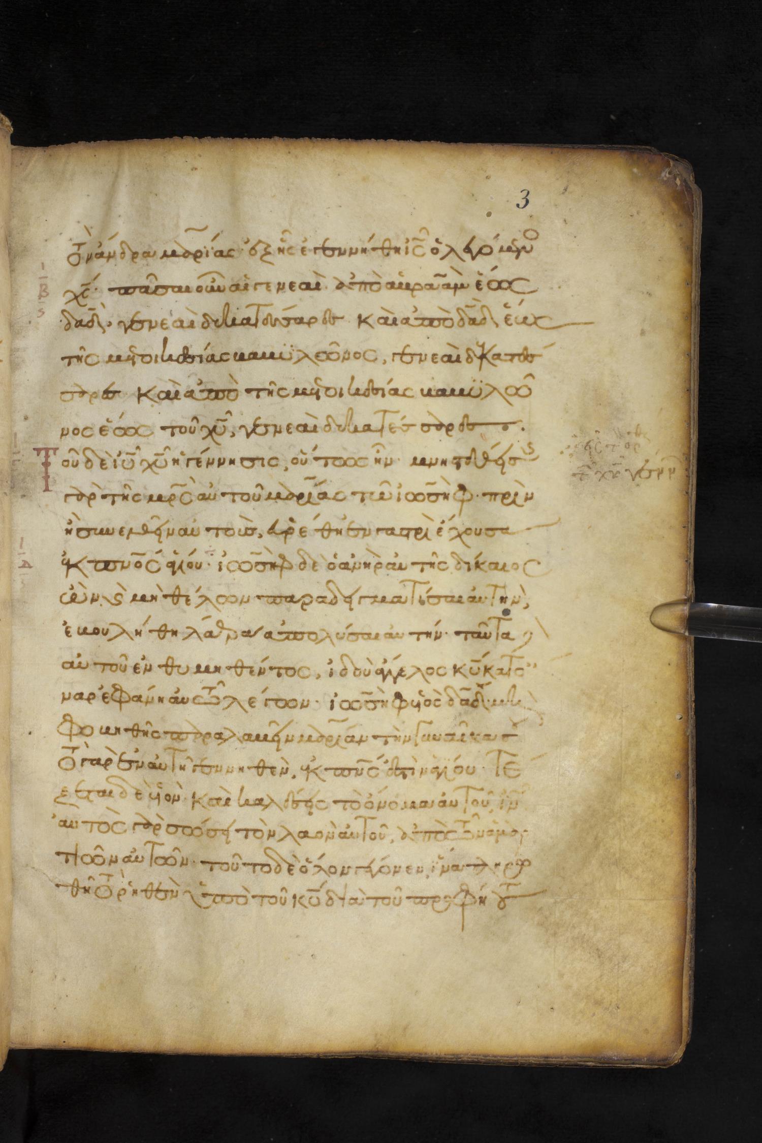 Thirteenth century minuscule of the Gospels on parchment; 172 leaves, 1 column, 20-30 lines per column. Images were taken at the National Library of Greece in Athens.
