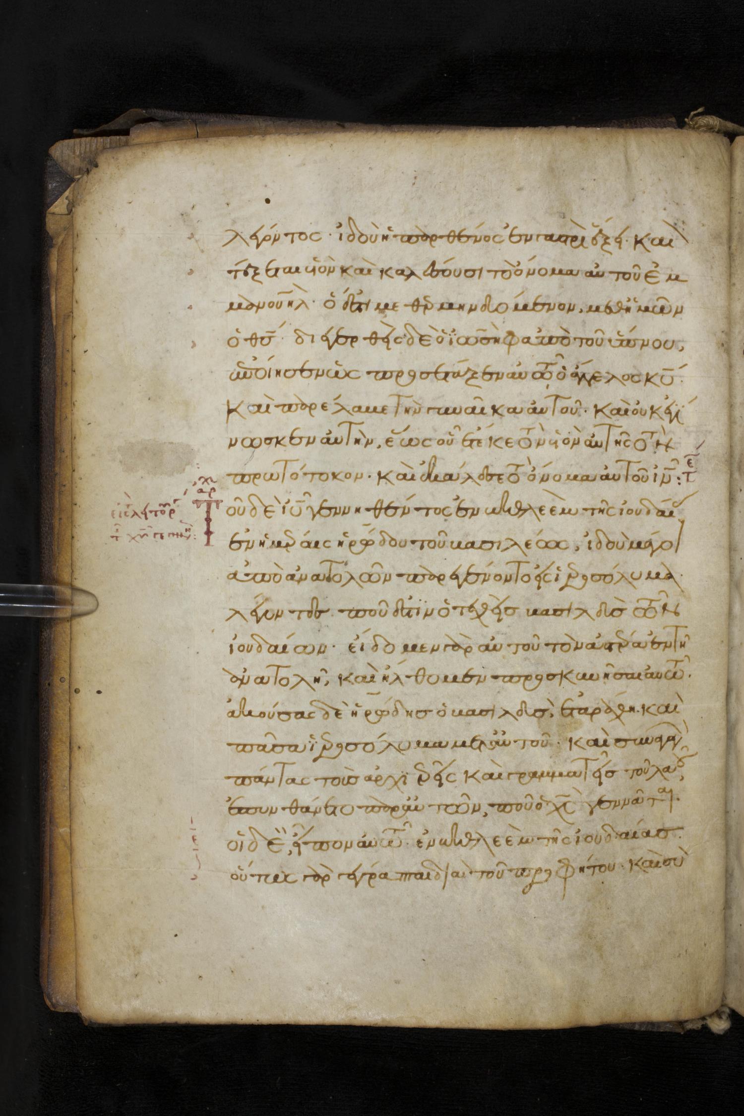 Thirteenth century minuscule of the Gospels on parchment; 172 leaves, 1 column, 20-30 lines per column. Images were taken at the National Library of Greece in Athens.