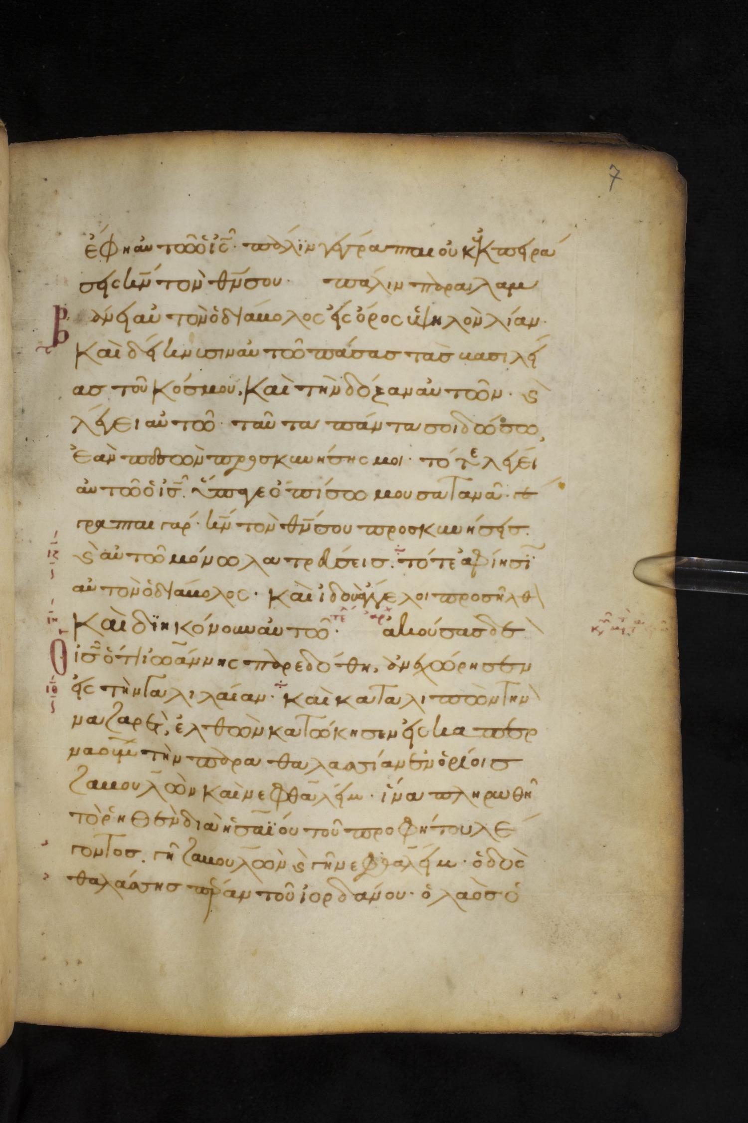 Thirteenth century minuscule of the Gospels on parchment; 172 leaves, 1 column, 20-30 lines per column. Images were taken at the National Library of Greece in Athens.