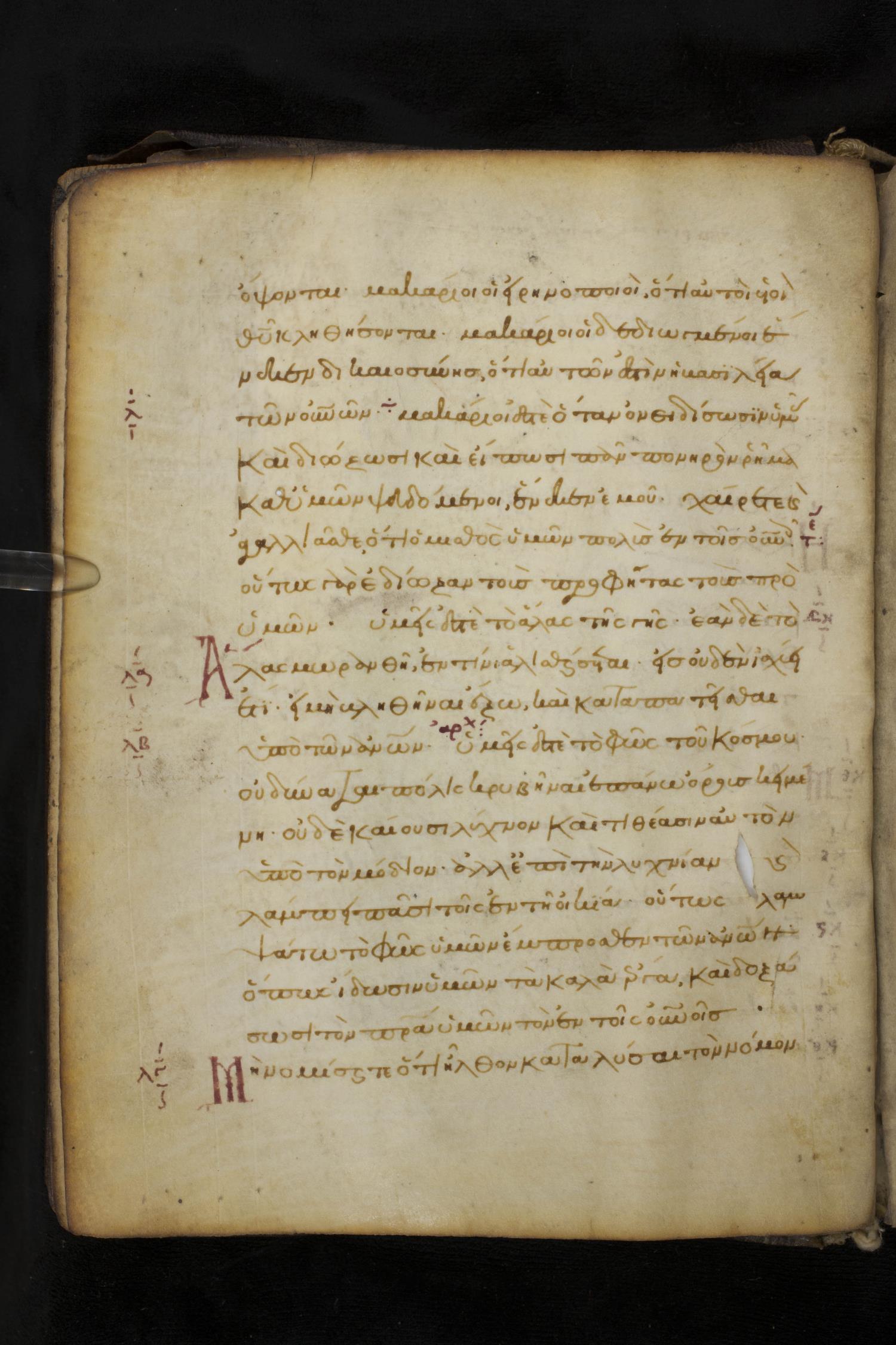 Thirteenth century minuscule of the Gospels on parchment; 172 leaves, 1 column, 20-30 lines per column. Images were taken at the National Library of Greece in Athens.