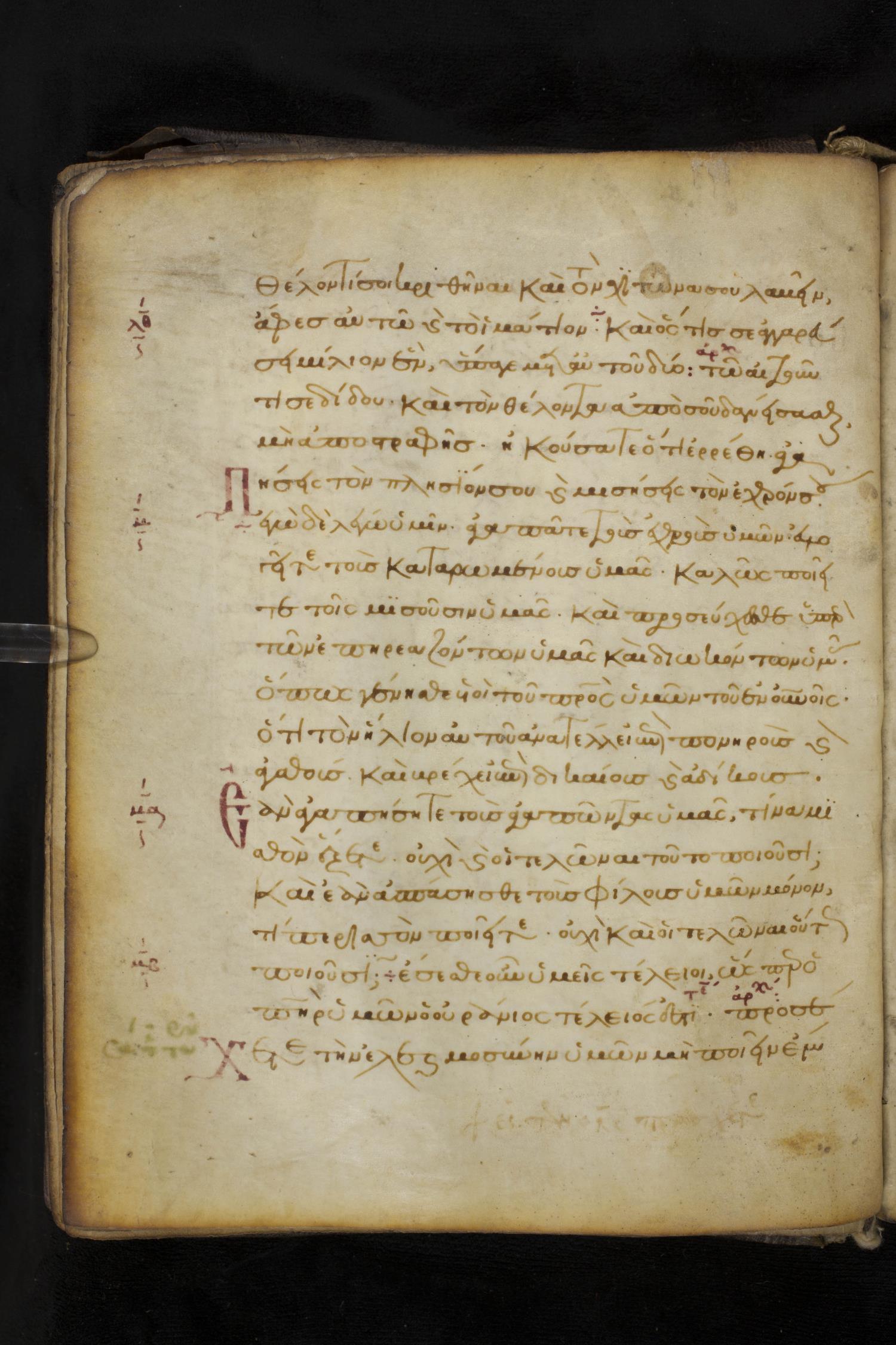 Thirteenth century minuscule of the Gospels on parchment; 172 leaves, 1 column, 20-30 lines per column. Images were taken at the National Library of Greece in Athens.