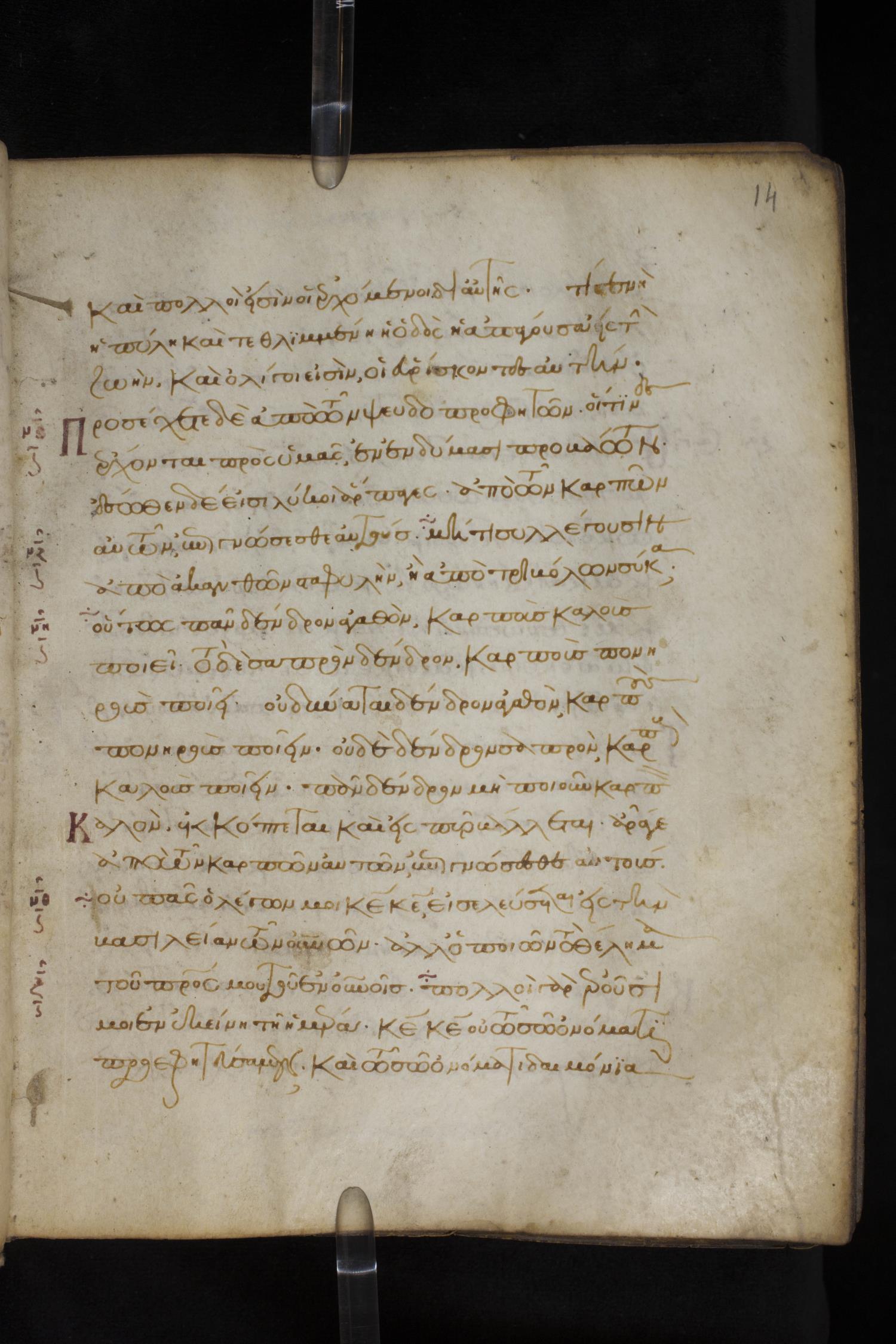 Thirteenth century minuscule of the Gospels on parchment; 172 leaves, 1 column, 20-30 lines per column. Images were taken at the National Library of Greece in Athens.