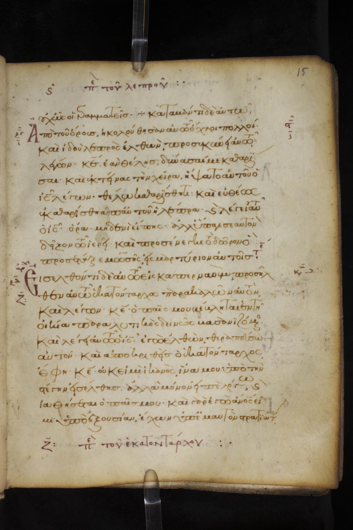 Thirteenth century minuscule of the Gospels on parchment; 172 leaves, 1 column, 20-30 lines per column. Images were taken at the National Library of Greece in Athens.