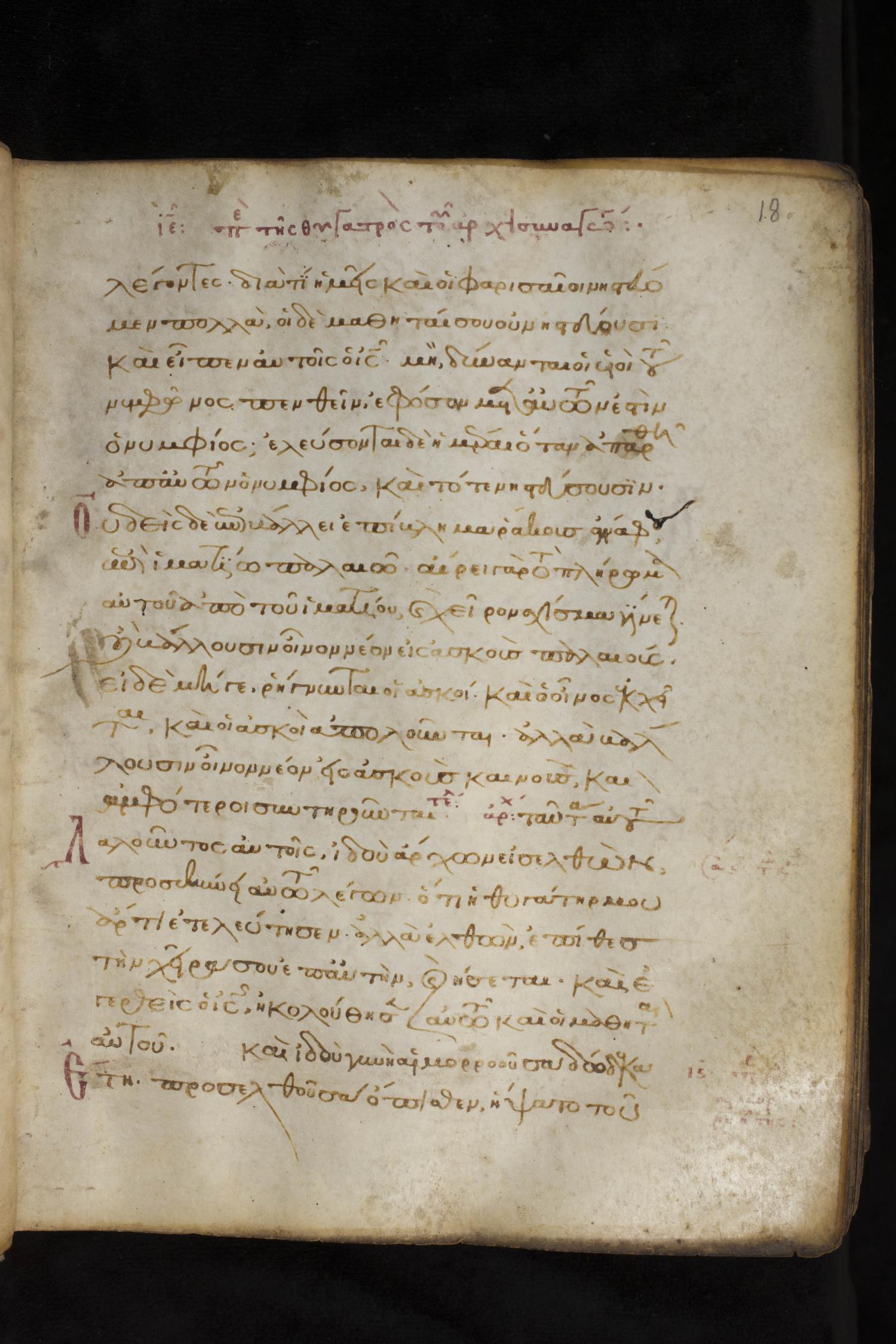Thirteenth century minuscule of the Gospels on parchment; 172 leaves, 1 column, 20-30 lines per column. Images were taken at the National Library of Greece in Athens.