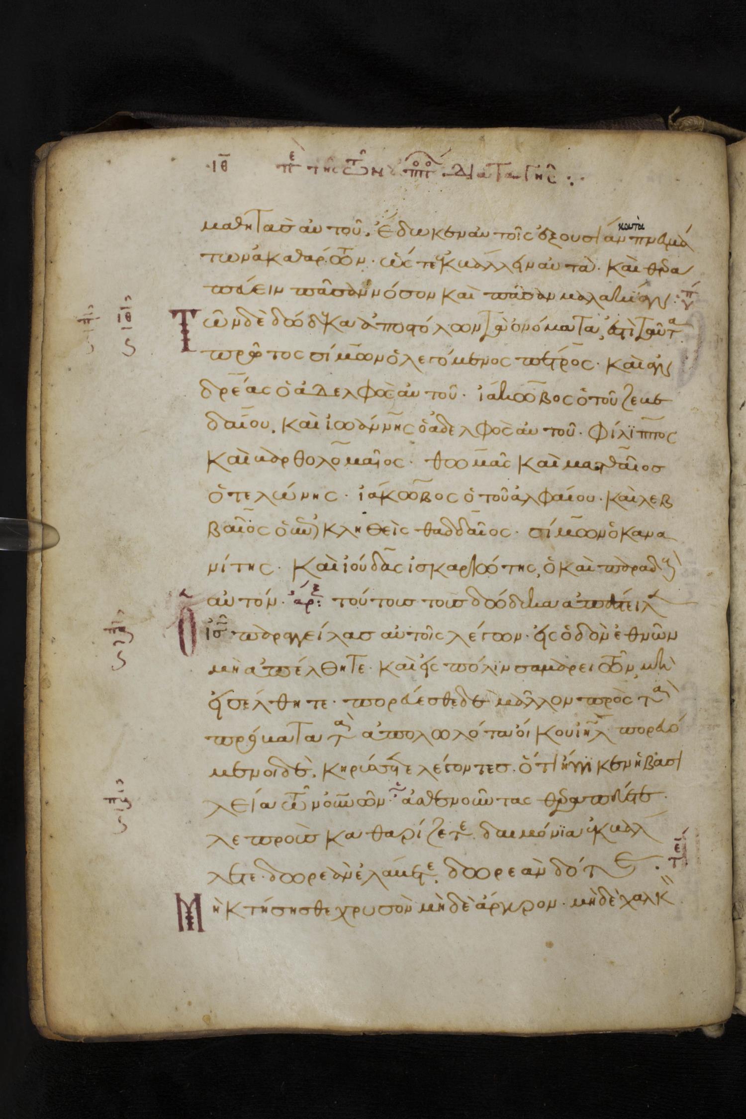 Thirteenth century minuscule of the Gospels on parchment; 172 leaves, 1 column, 20-30 lines per column. Images were taken at the National Library of Greece in Athens.