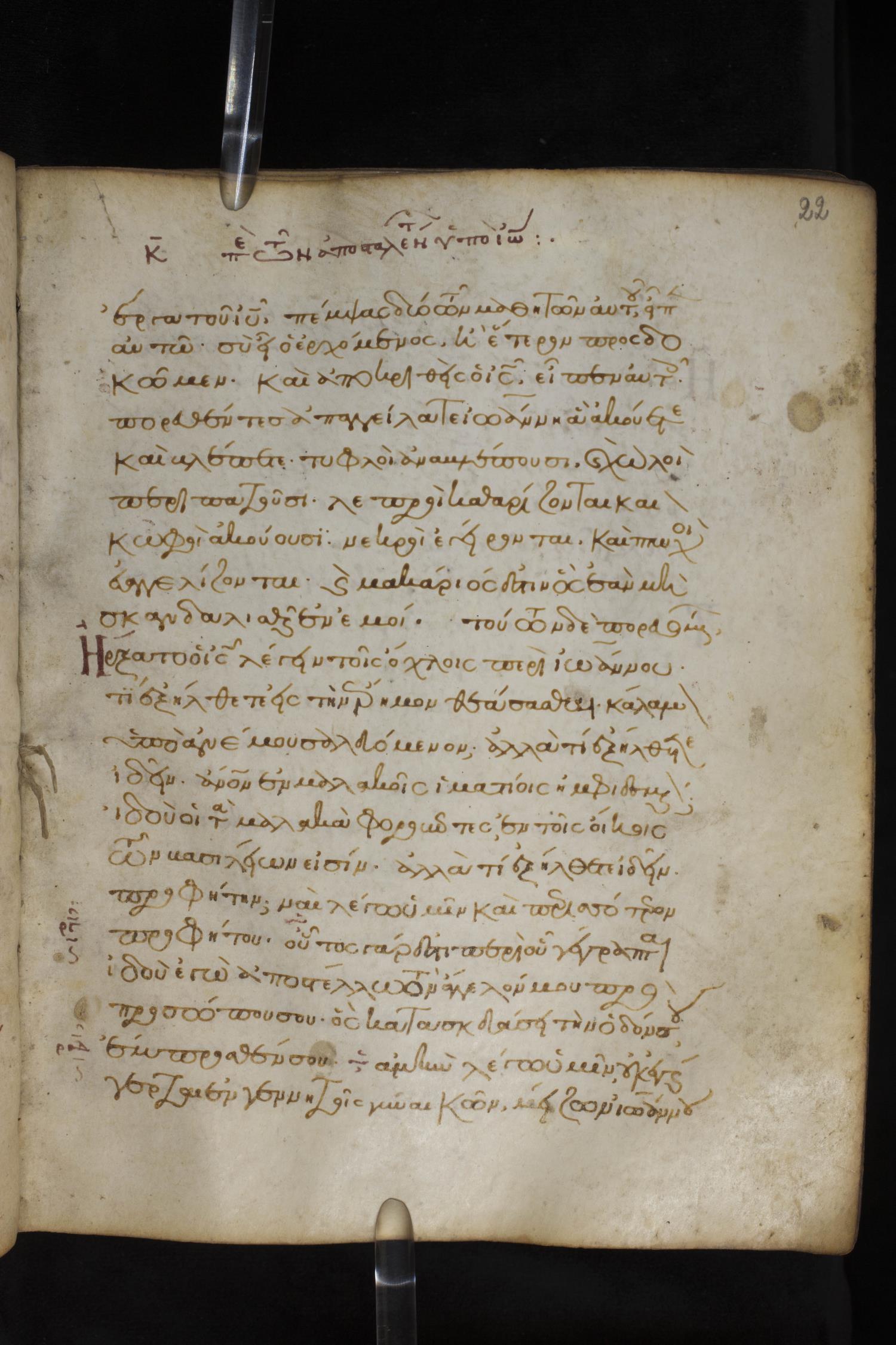 Thirteenth century minuscule of the Gospels on parchment; 172 leaves, 1 column, 20-30 lines per column. Images were taken at the National Library of Greece in Athens.