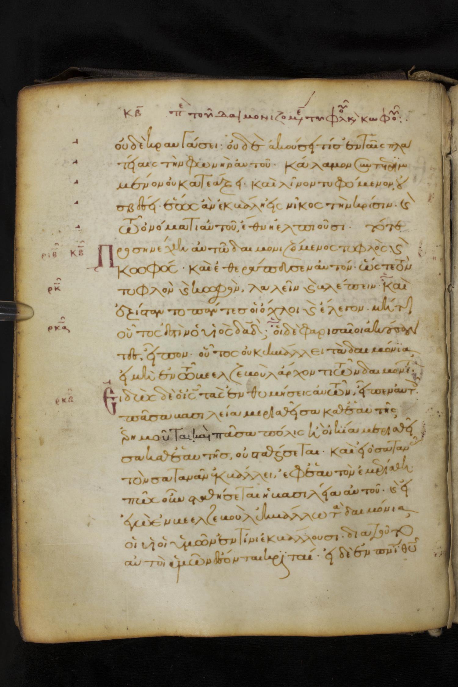 Thirteenth century minuscule of the Gospels on parchment; 172 leaves, 1 column, 20-30 lines per column. Images were taken at the National Library of Greece in Athens.