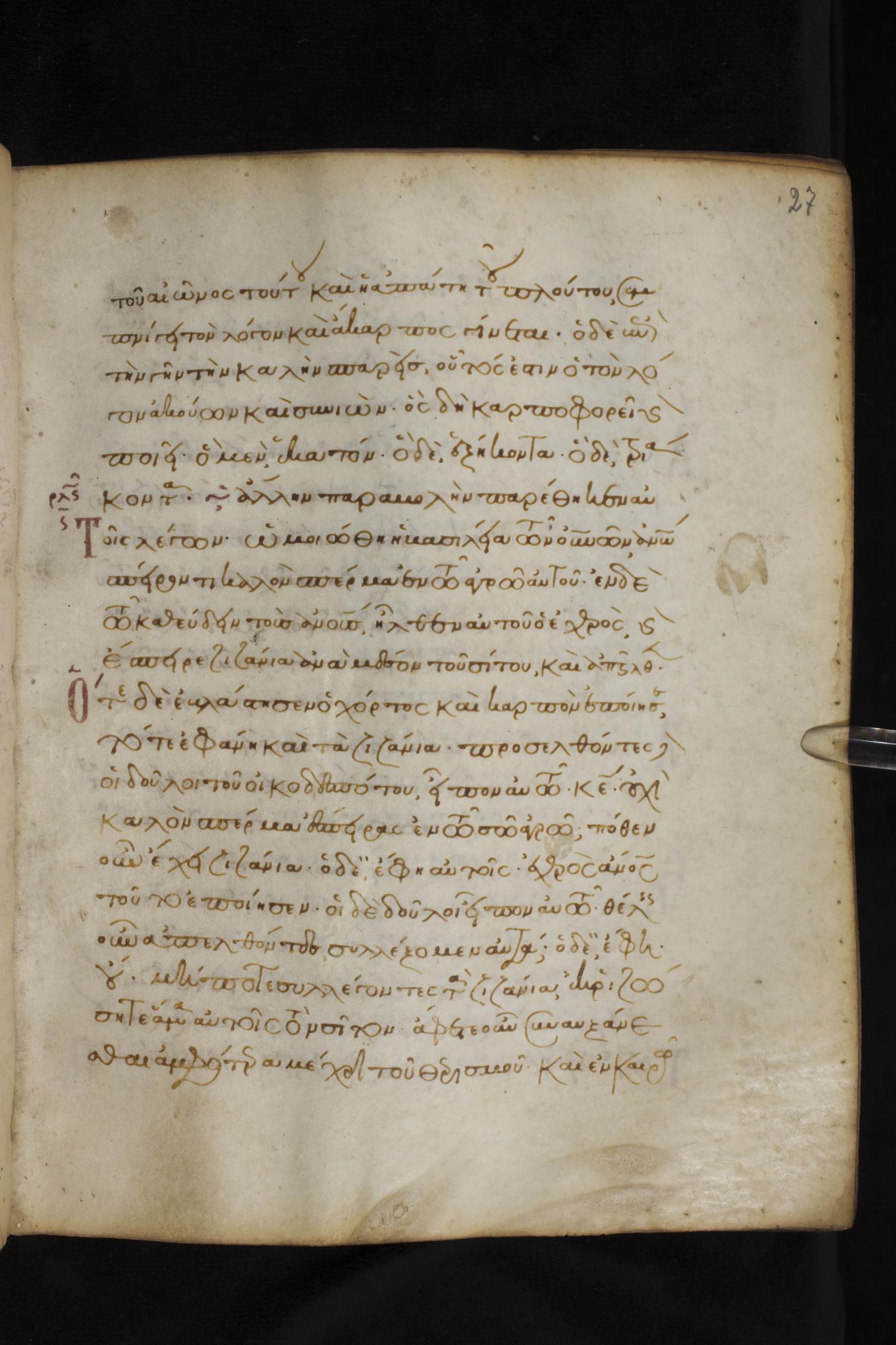 Thirteenth century minuscule of the Gospels on parchment; 172 leaves, 1 column, 20-30 lines per column. Images were taken at the National Library of Greece in Athens.