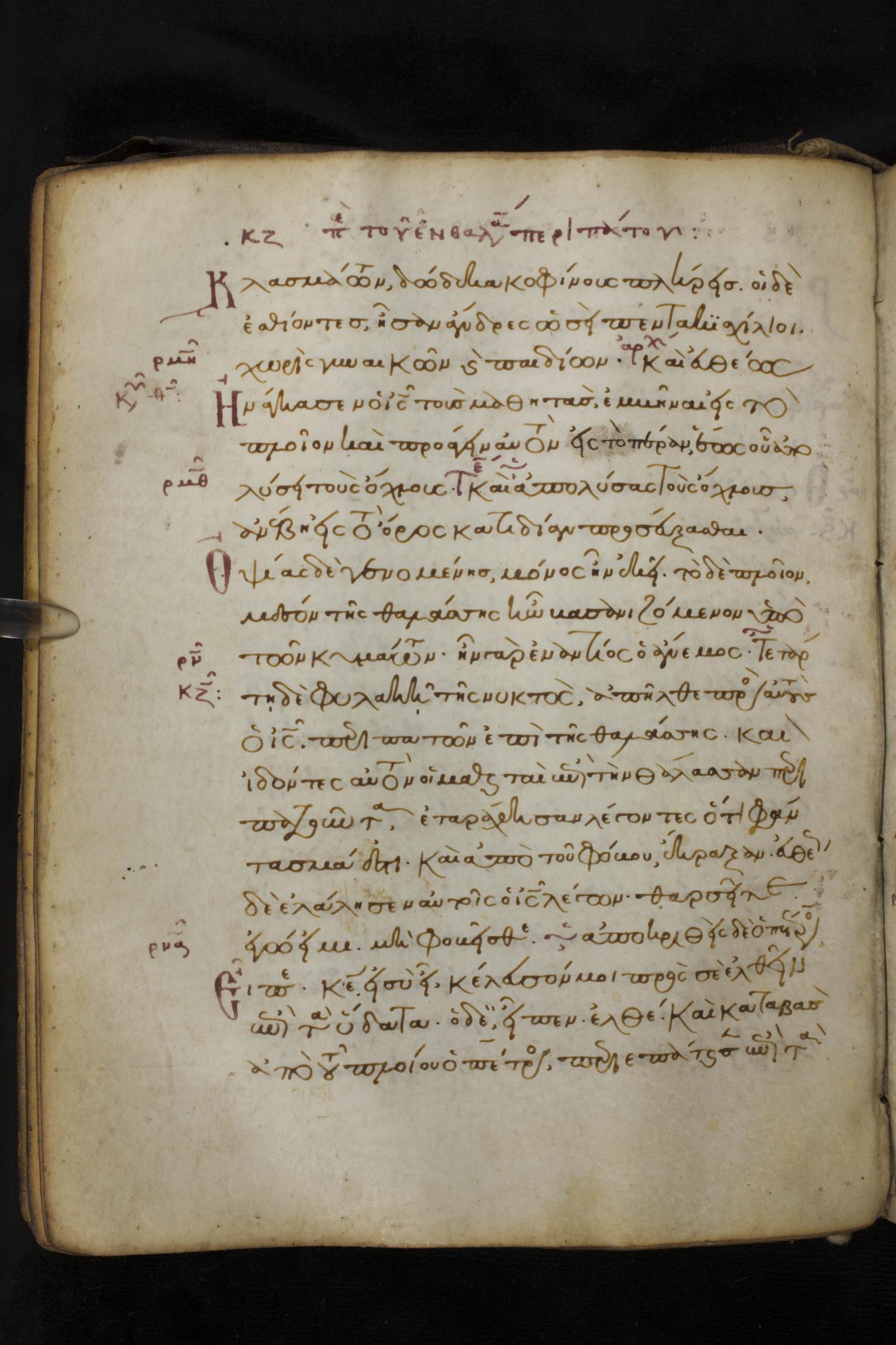 Thirteenth century minuscule of the Gospels on parchment; 172 leaves, 1 column, 20-30 lines per column. Images were taken at the National Library of Greece in Athens.