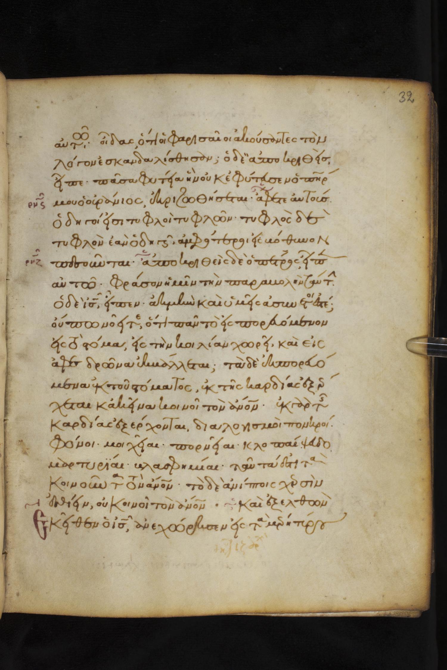 Thirteenth century minuscule of the Gospels on parchment; 172 leaves, 1 column, 20-30 lines per column. Images were taken at the National Library of Greece in Athens.
