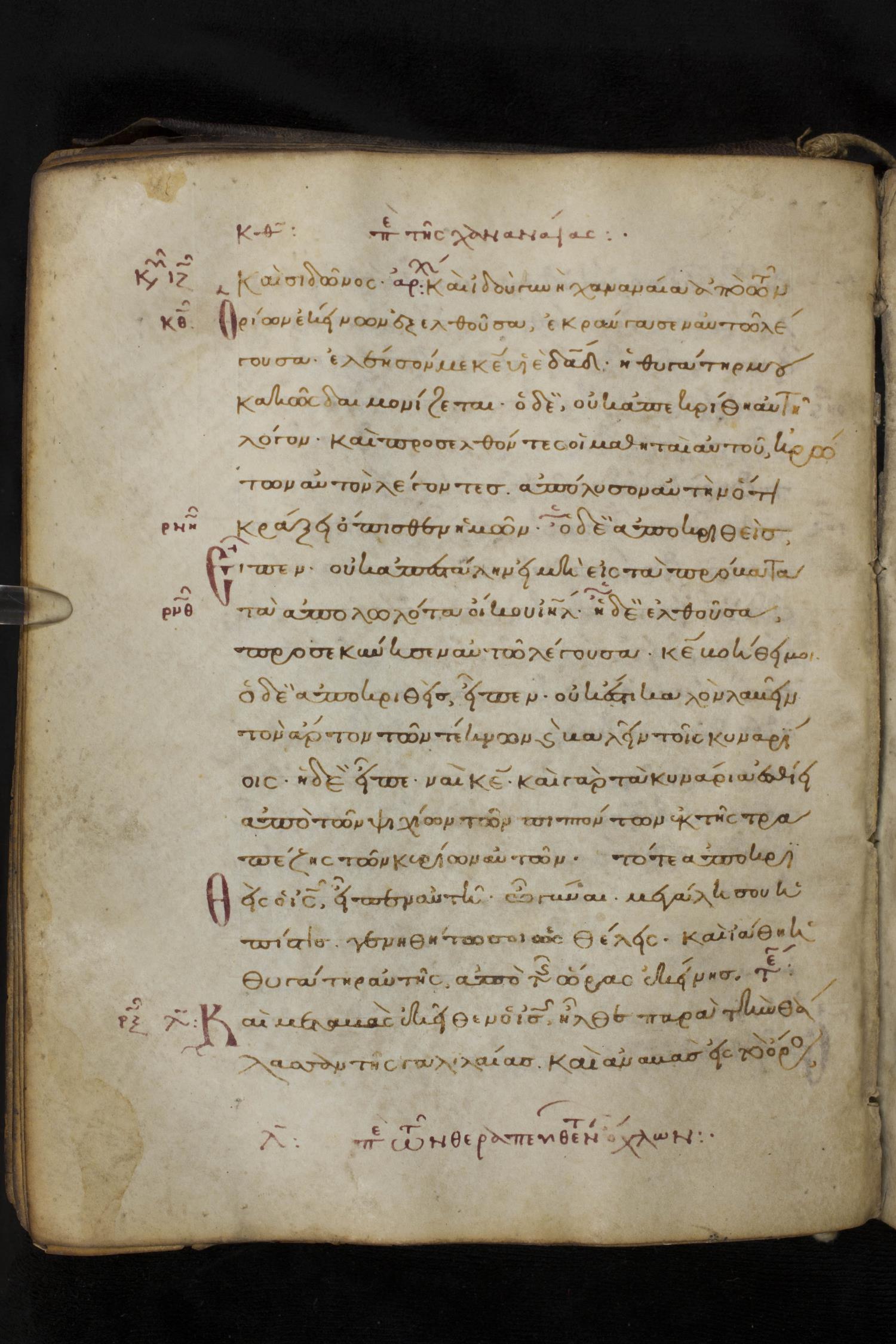 Thirteenth century minuscule of the Gospels on parchment; 172 leaves, 1 column, 20-30 lines per column. Images were taken at the National Library of Greece in Athens.