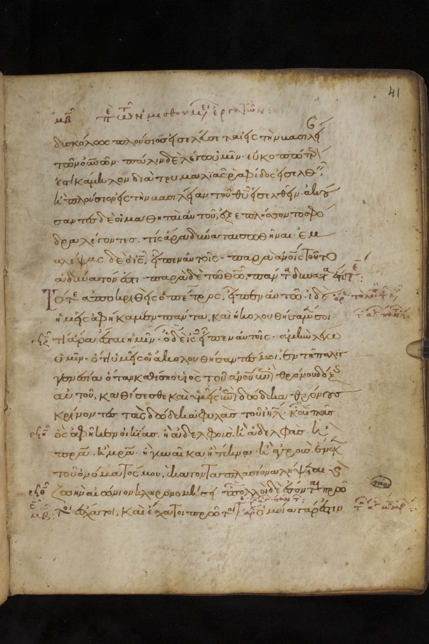 Thirteenth century minuscule of the Gospels on parchment; 172 leaves, 1 column, 20-30 lines per column. Images were taken at the National Library of Greece in Athens.