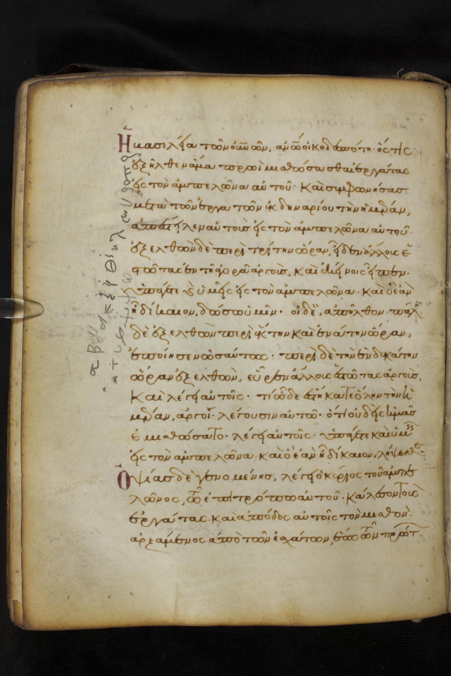 Thirteenth century minuscule of the Gospels on parchment; 172 leaves, 1 column, 20-30 lines per column. Images were taken at the National Library of Greece in Athens.