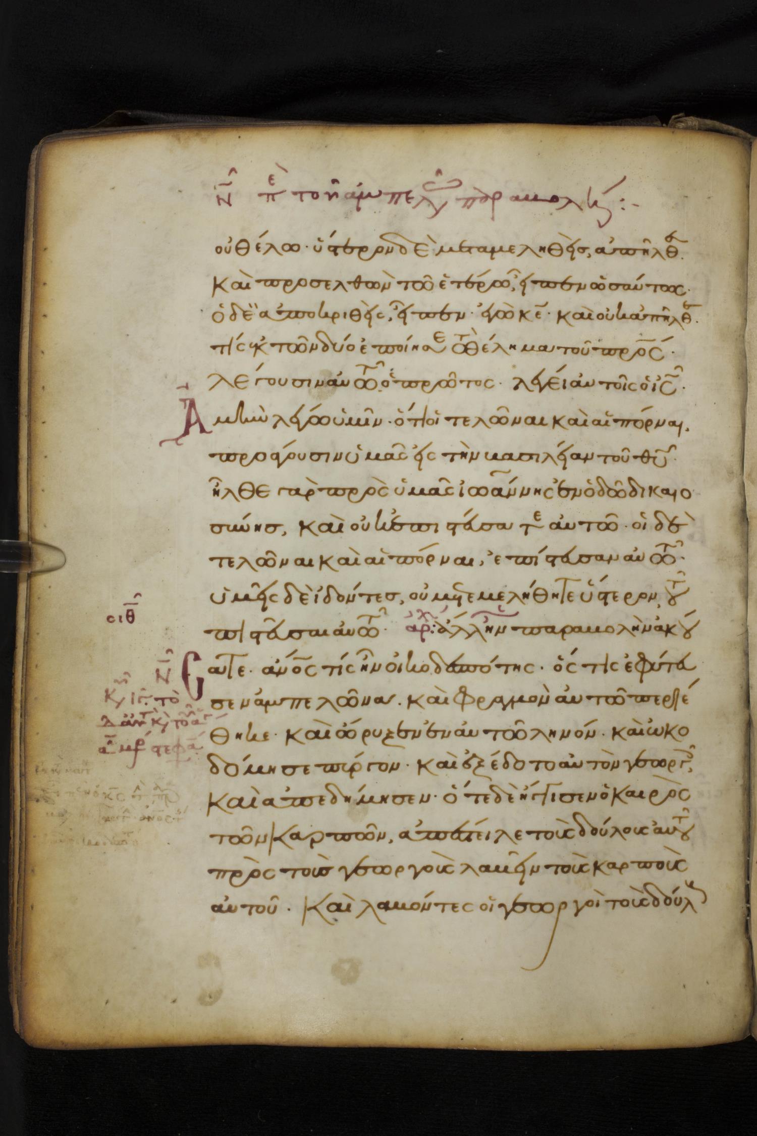 Thirteenth century minuscule of the Gospels on parchment; 172 leaves, 1 column, 20-30 lines per column. Images were taken at the National Library of Greece in Athens.