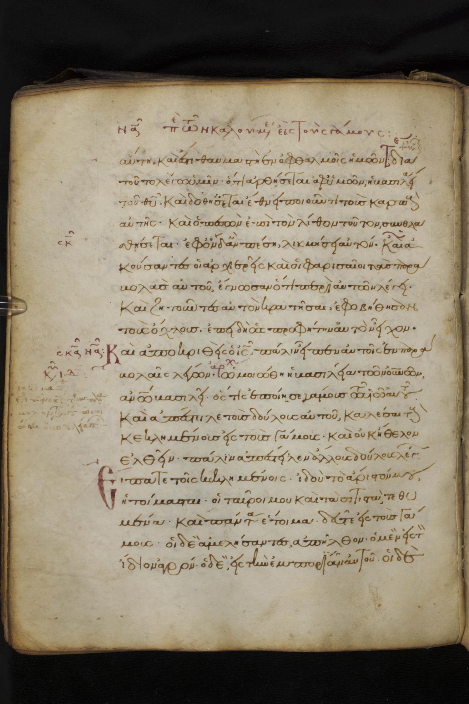Thirteenth century minuscule of the Gospels on parchment; 172 leaves, 1 column, 20-30 lines per column. Images were taken at the National Library of Greece in Athens.
