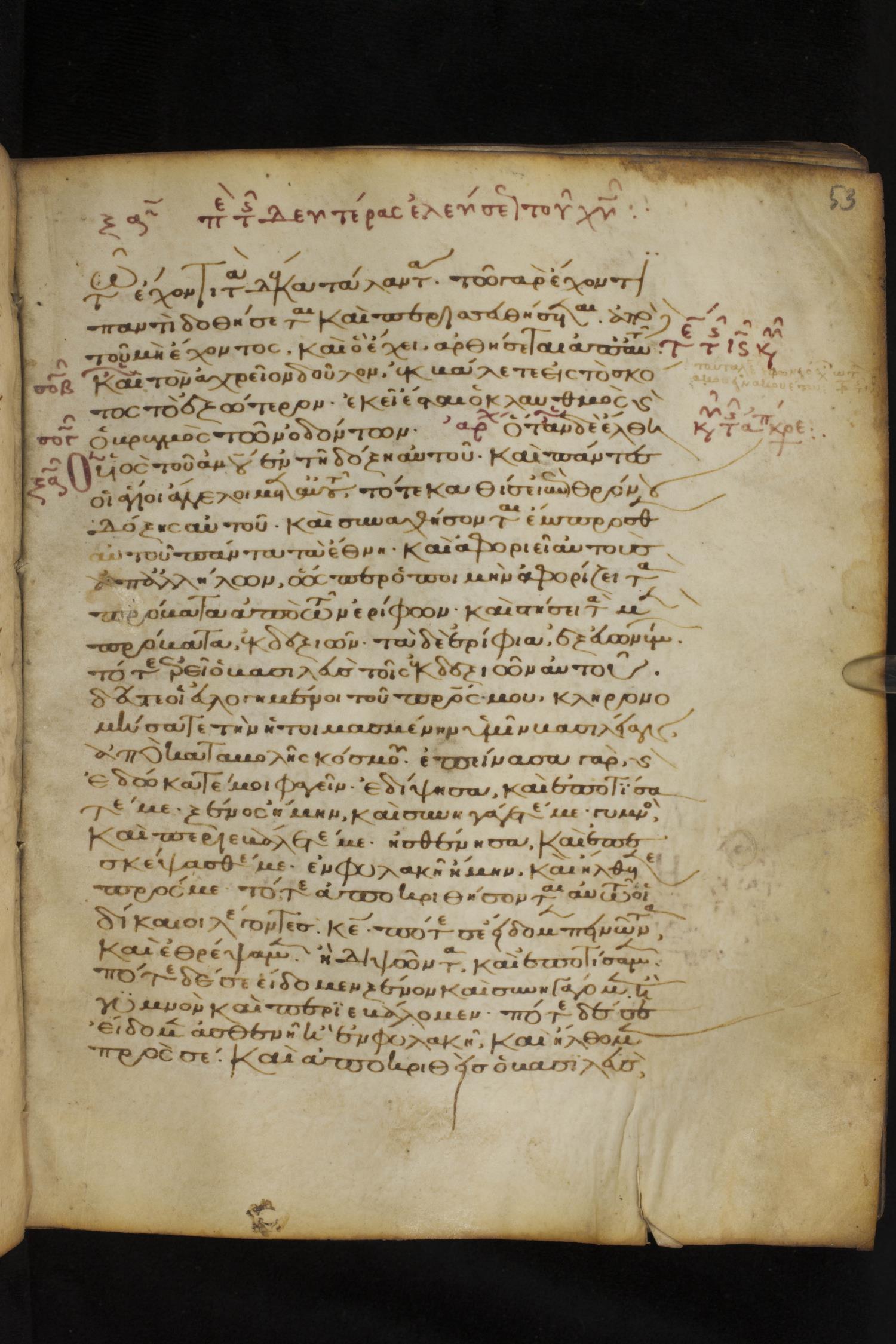 Thirteenth century minuscule of the Gospels on parchment; 172 leaves, 1 column, 20-30 lines per column. Images were taken at the National Library of Greece in Athens.