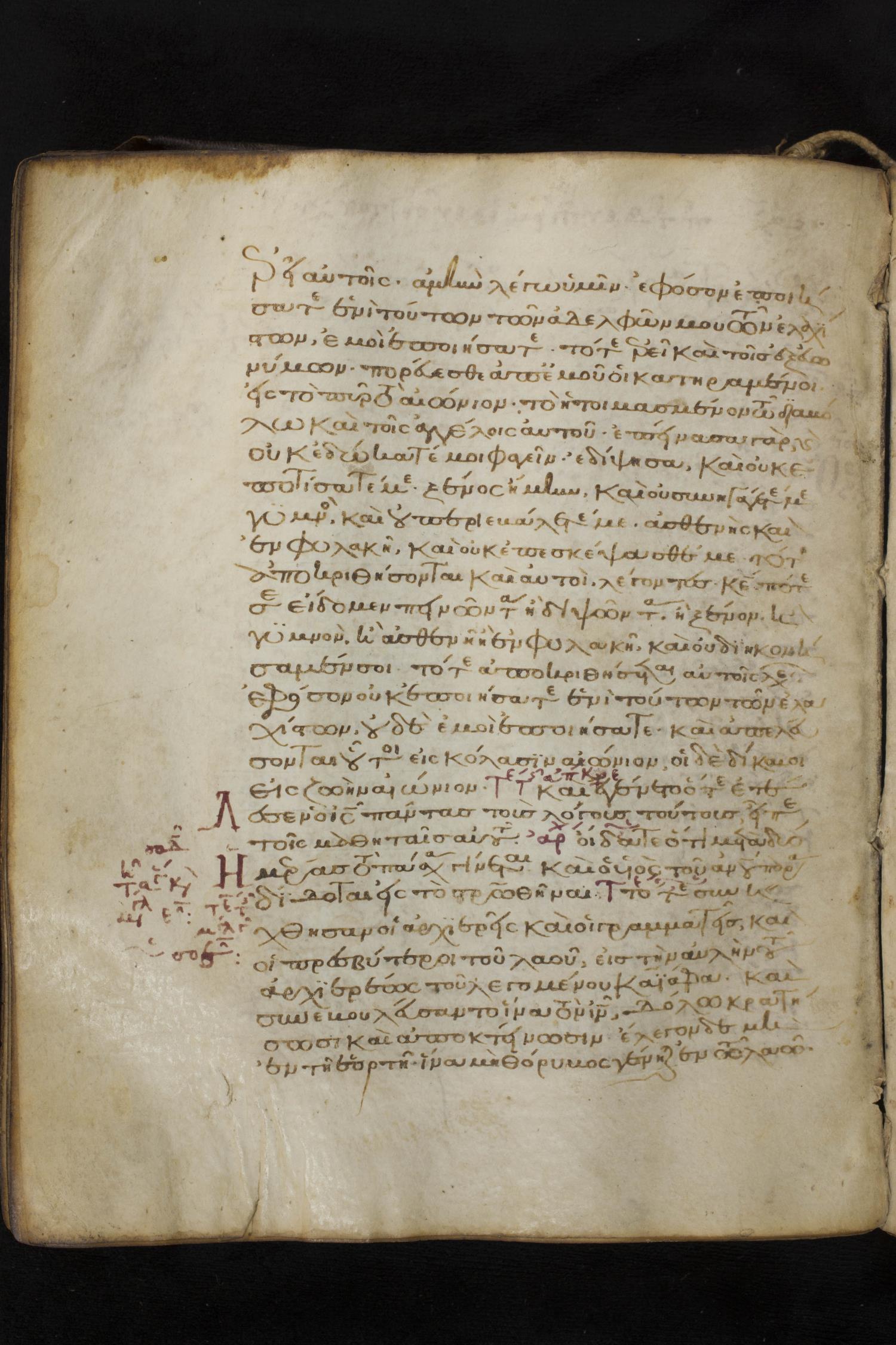 Thirteenth century minuscule of the Gospels on parchment; 172 leaves, 1 column, 20-30 lines per column. Images were taken at the National Library of Greece in Athens.