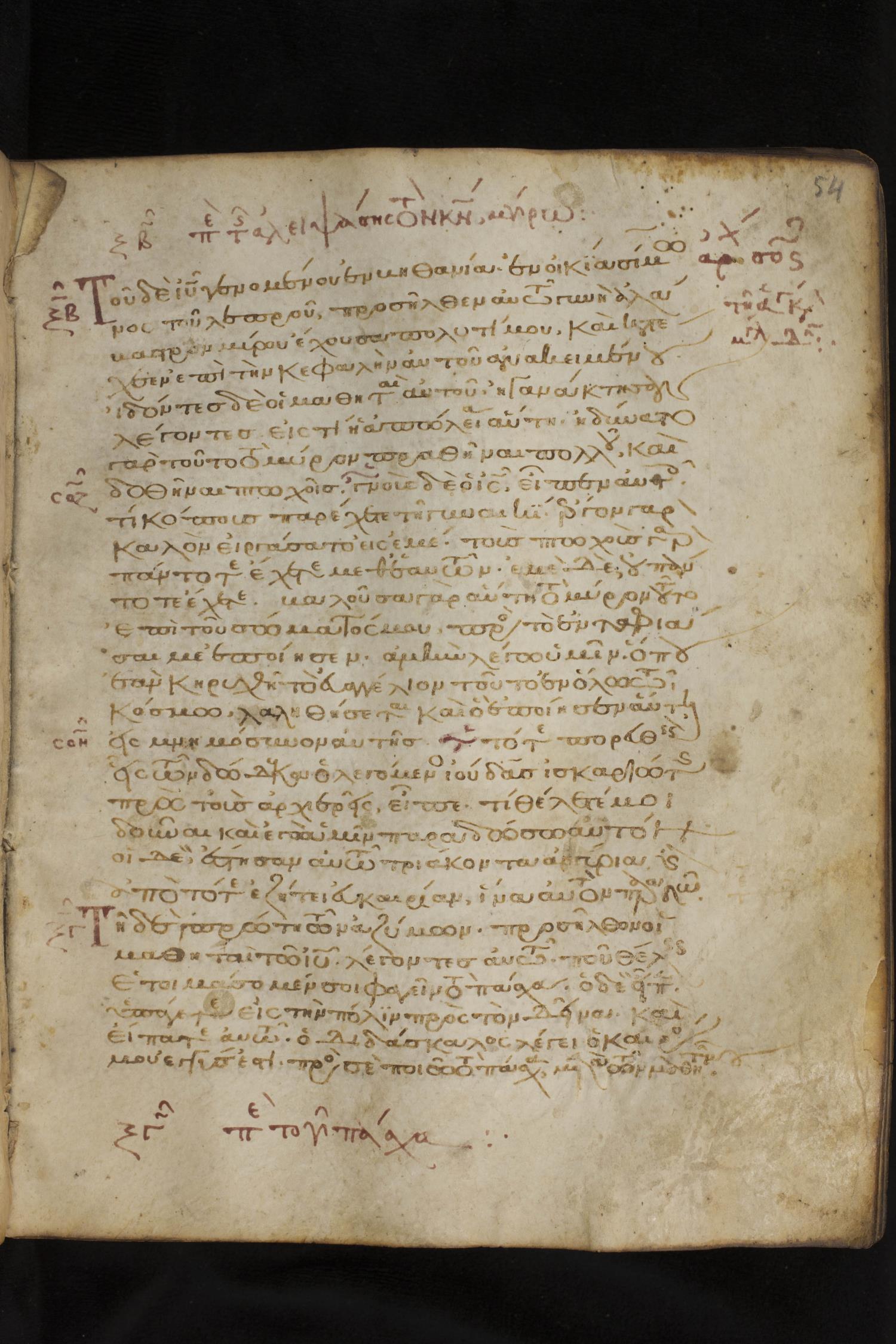 Thirteenth century minuscule of the Gospels on parchment; 172 leaves, 1 column, 20-30 lines per column. Images were taken at the National Library of Greece in Athens.