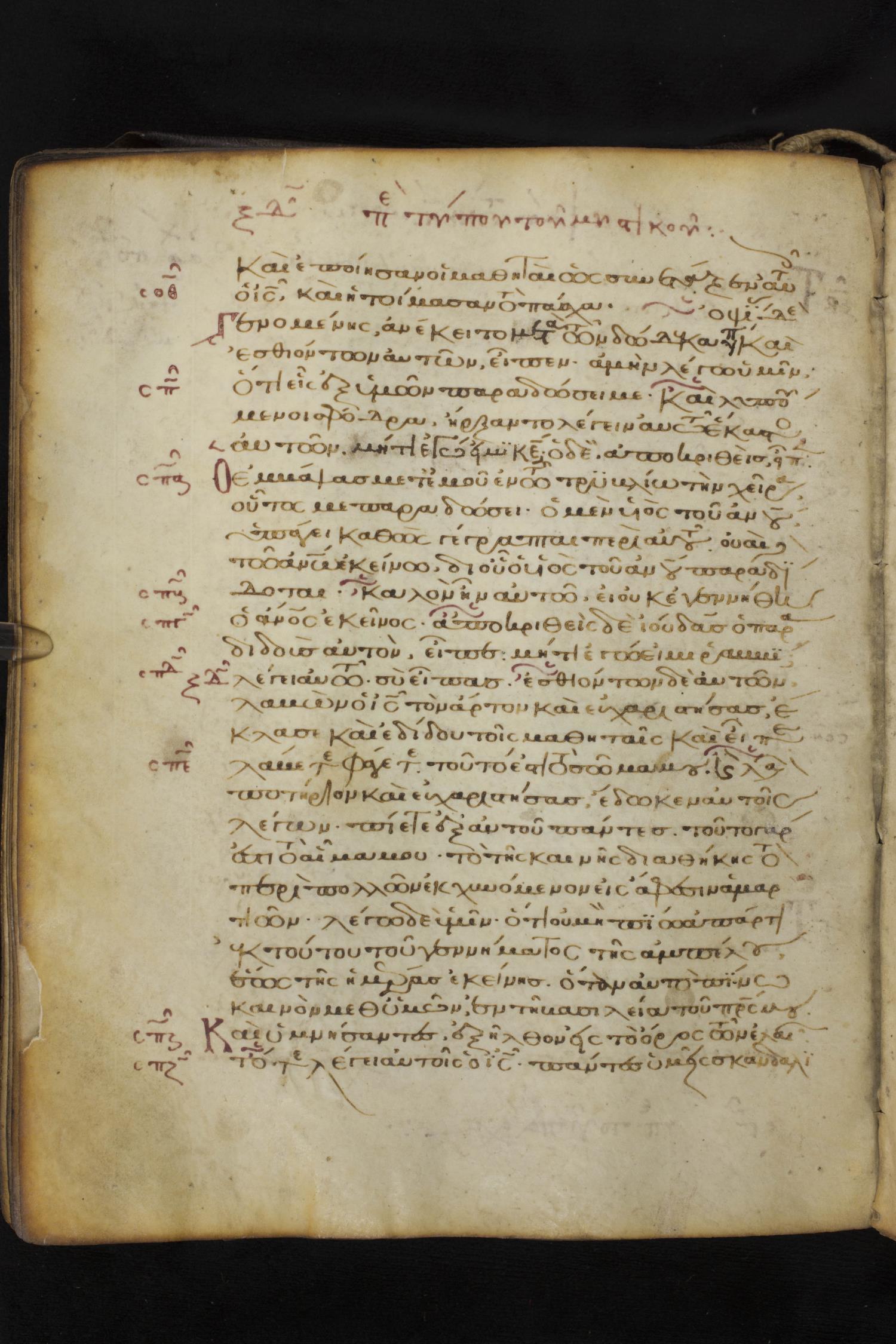 Thirteenth century minuscule of the Gospels on parchment; 172 leaves, 1 column, 20-30 lines per column. Images were taken at the National Library of Greece in Athens.