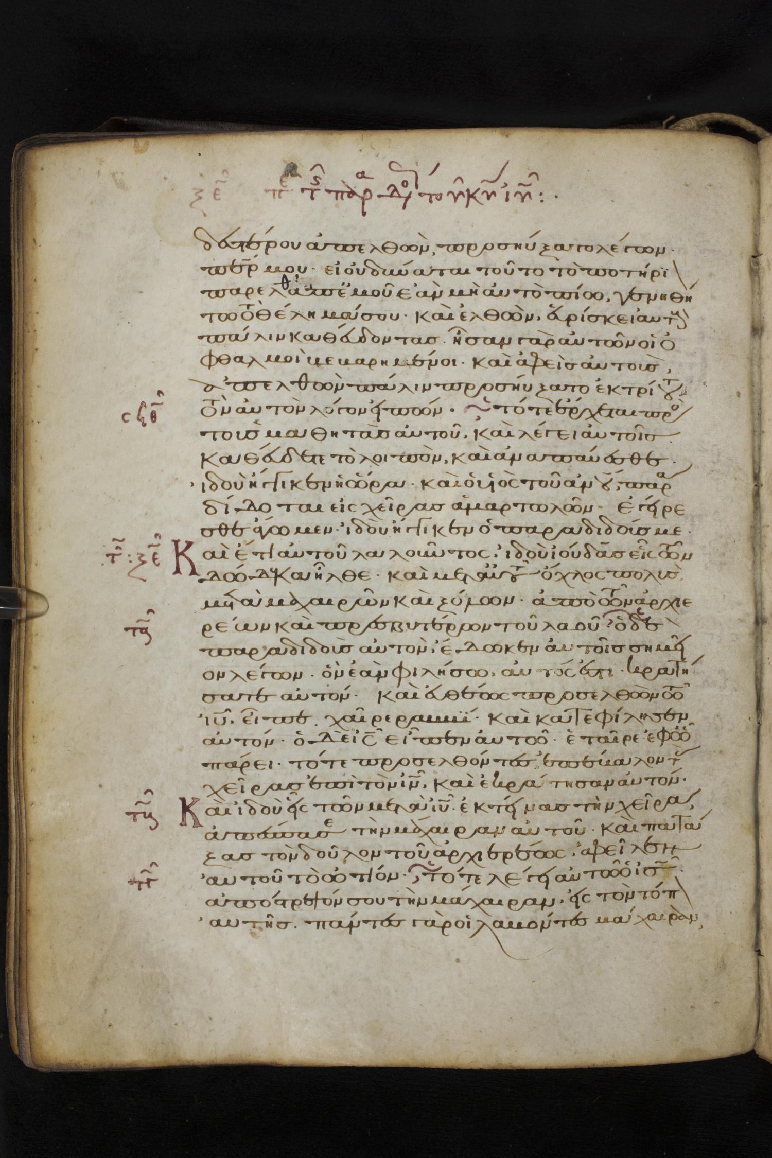 Thirteenth century minuscule of the Gospels on parchment; 172 leaves, 1 column, 20-30 lines per column. Images were taken at the National Library of Greece in Athens.