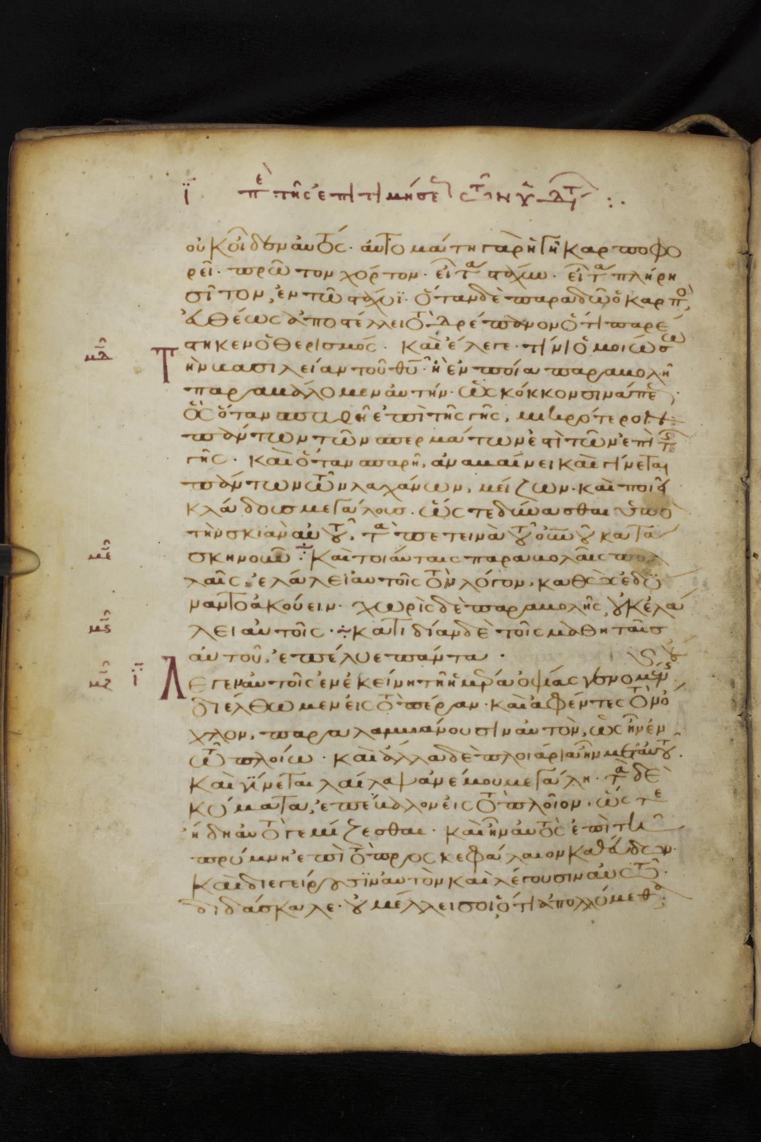 Thirteenth century minuscule of the Gospels on parchment; 172 leaves, 1 column, 20-30 lines per column. Images were taken at the National Library of Greece in Athens.
