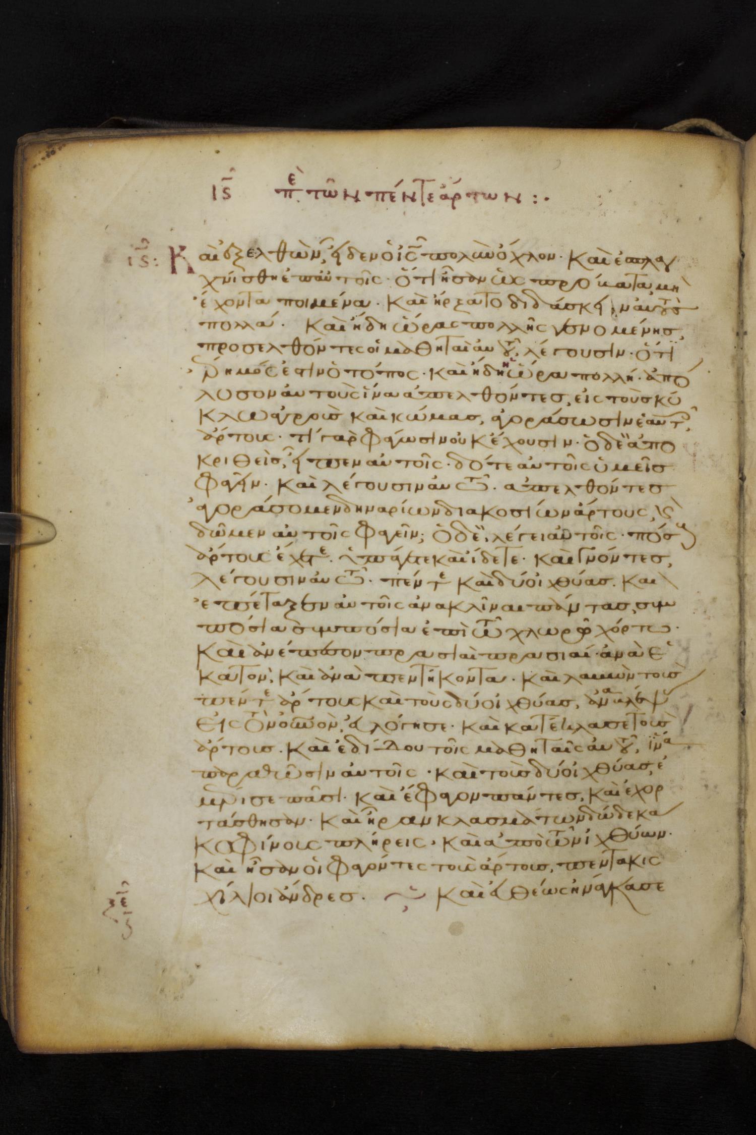Thirteenth century minuscule of the Gospels on parchment; 172 leaves, 1 column, 20-30 lines per column. Images were taken at the National Library of Greece in Athens.