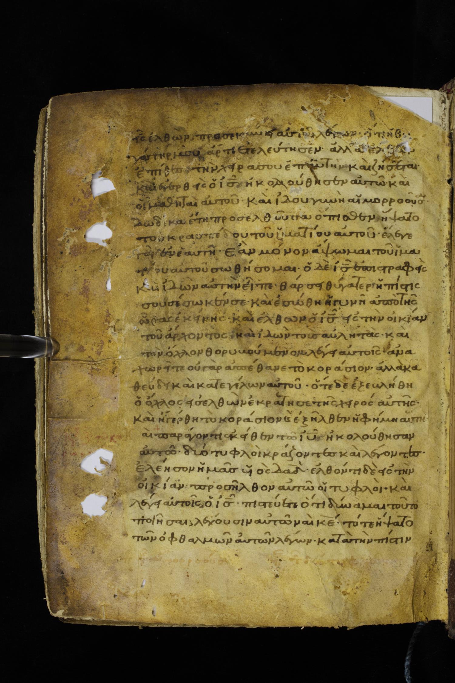 Thirteenth or fourteenth century minuscule of the Gospels on parchment; 162 leaves, 1 column, 25 lines per column. Images were taken at the National Library of Greece in Athens.