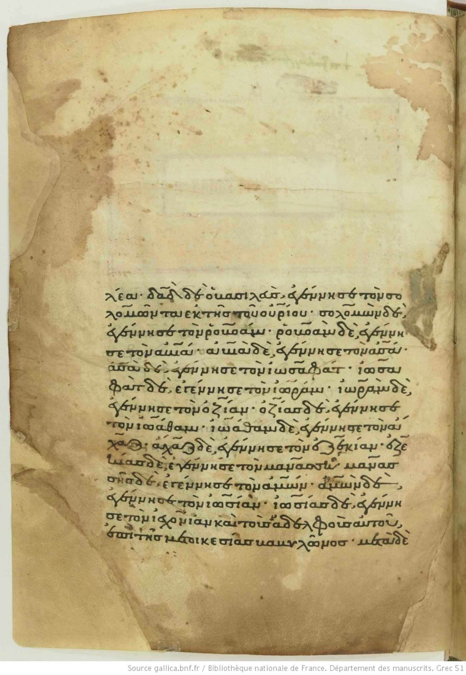 Ὀζείας / Ὀζίας δὲ ἐγέννησεν τὸν Ἰωαθάμ, Ἰωαθὰμ δὲ ἐγέννησεν τὸν Ἄχας / Ἀχάζ, Ἄχας / Ἀχὰζ δὲ ἐγέννησεν τὸν Ἑζεκίαν,