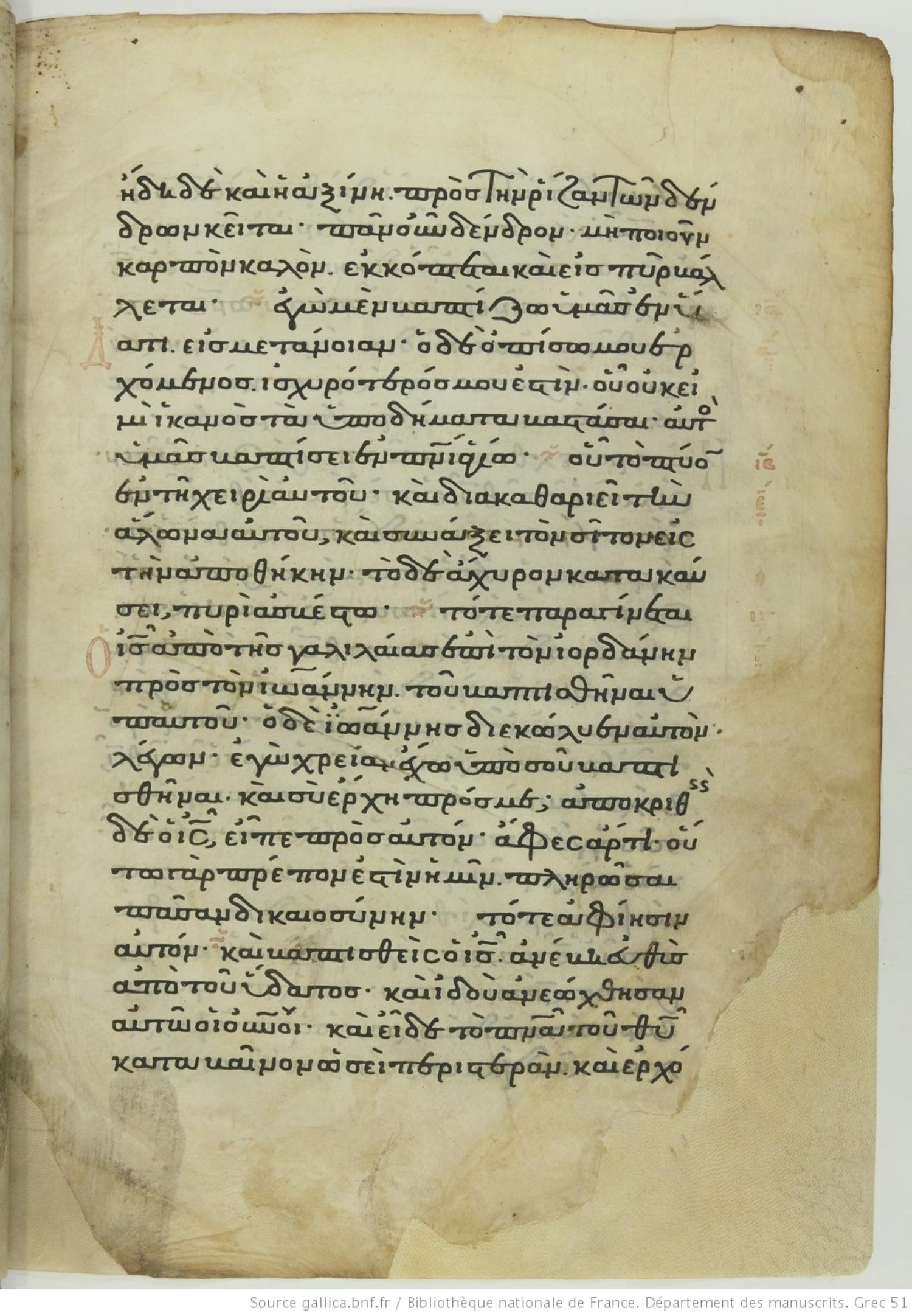 Τότε παραγίνεται ὁ Ἰησοῦς ἀπὸ τῆς Γαλιλαίας ἐπὶ τὸν Ἰορδάνην πρὸς τὸν Ἰωάνην / Ἰωάννην τοῦ βαπτισθῆναι ὑπ´ αὐτοῦ.