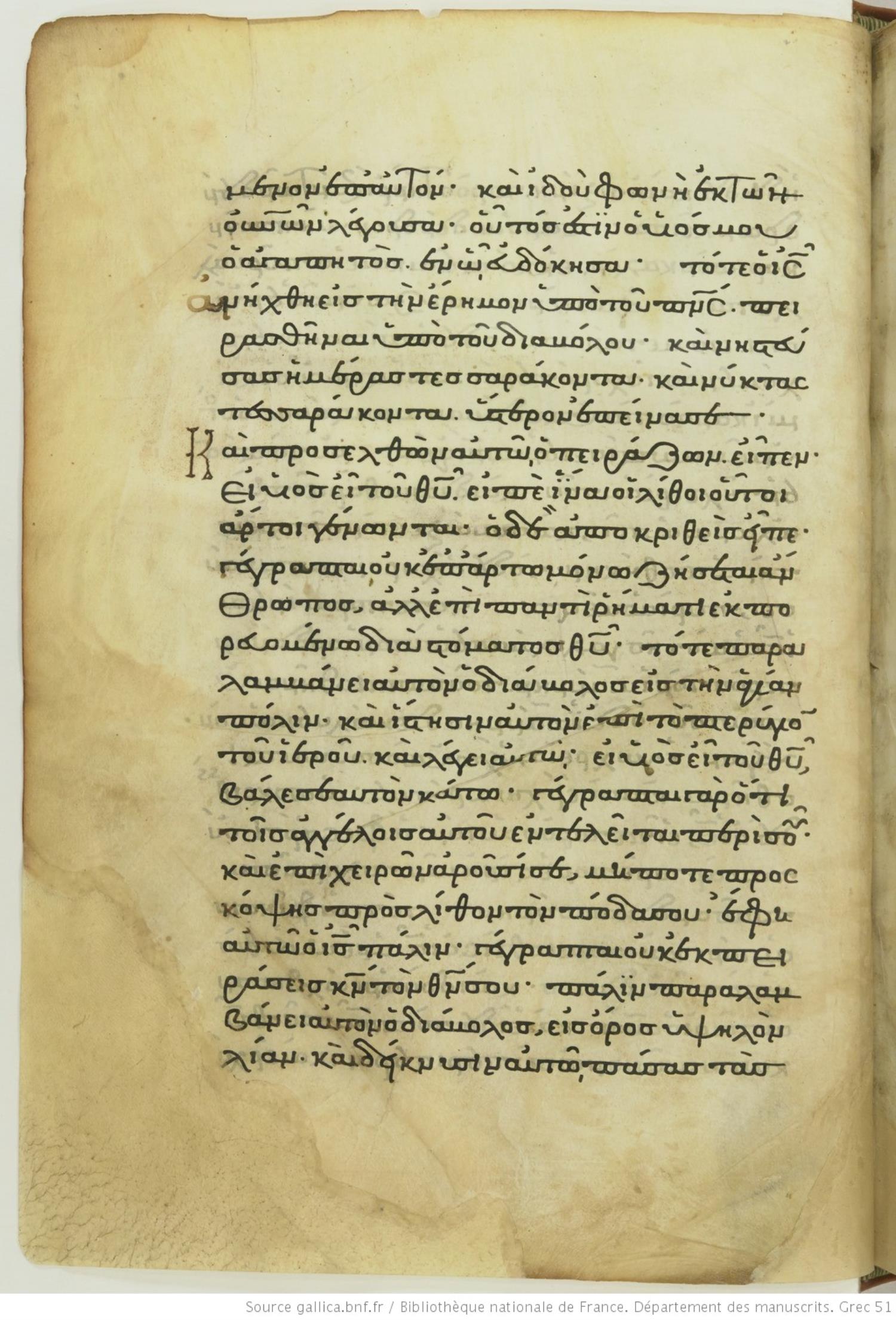 Τότε παραλαμβάνει αὐτὸν ὁ διάβολος εἰς τὴν ἁγίαν πόλιν, καὶ ἔστησεν αὐτὸν ἐπὶ τὸ πτερύγιον τοῦ ἱεροῦ,